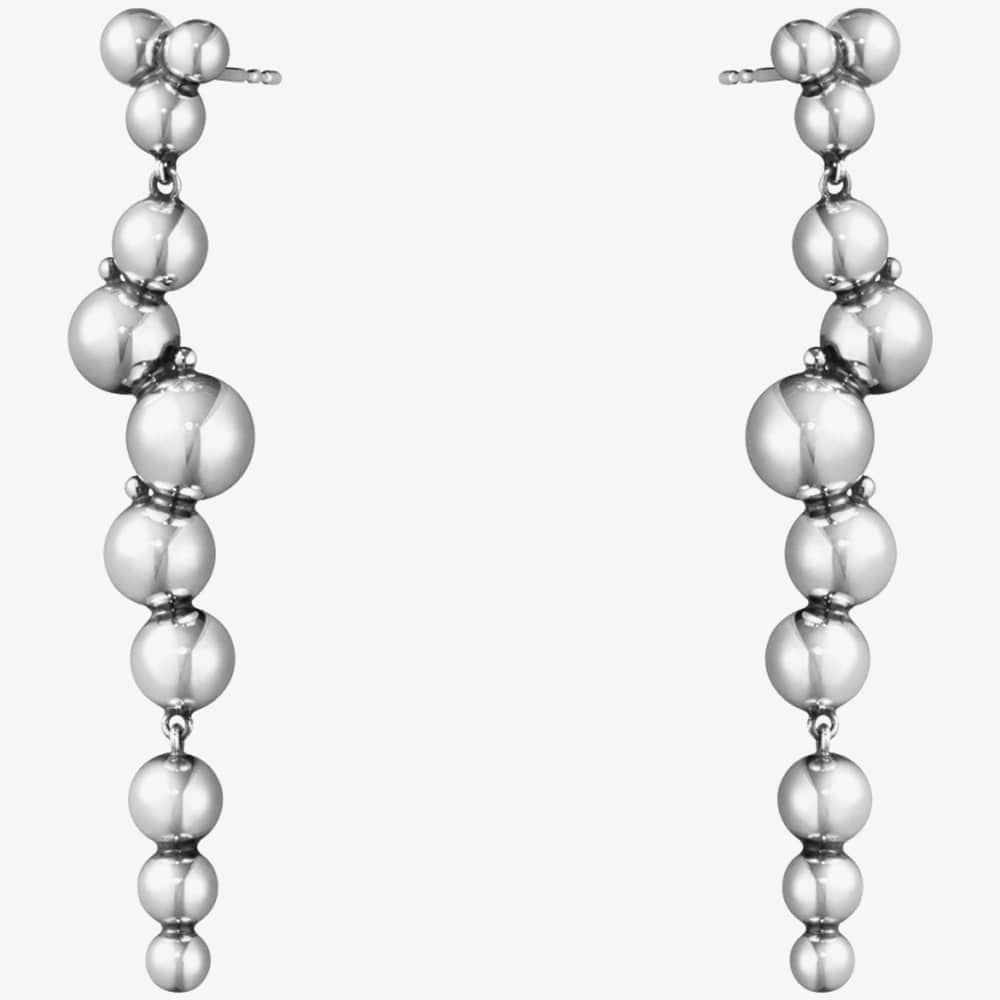 Georg Jensen Moonlight Grapes Long Dropper Sterling Silver Earrings 10019040 are made from sterling silver and measure 2.32 inches. The beads hang down elegantly and are based of a former design during the brands art Nouveau period. These earrings are completed with a post & butterfly fastening.