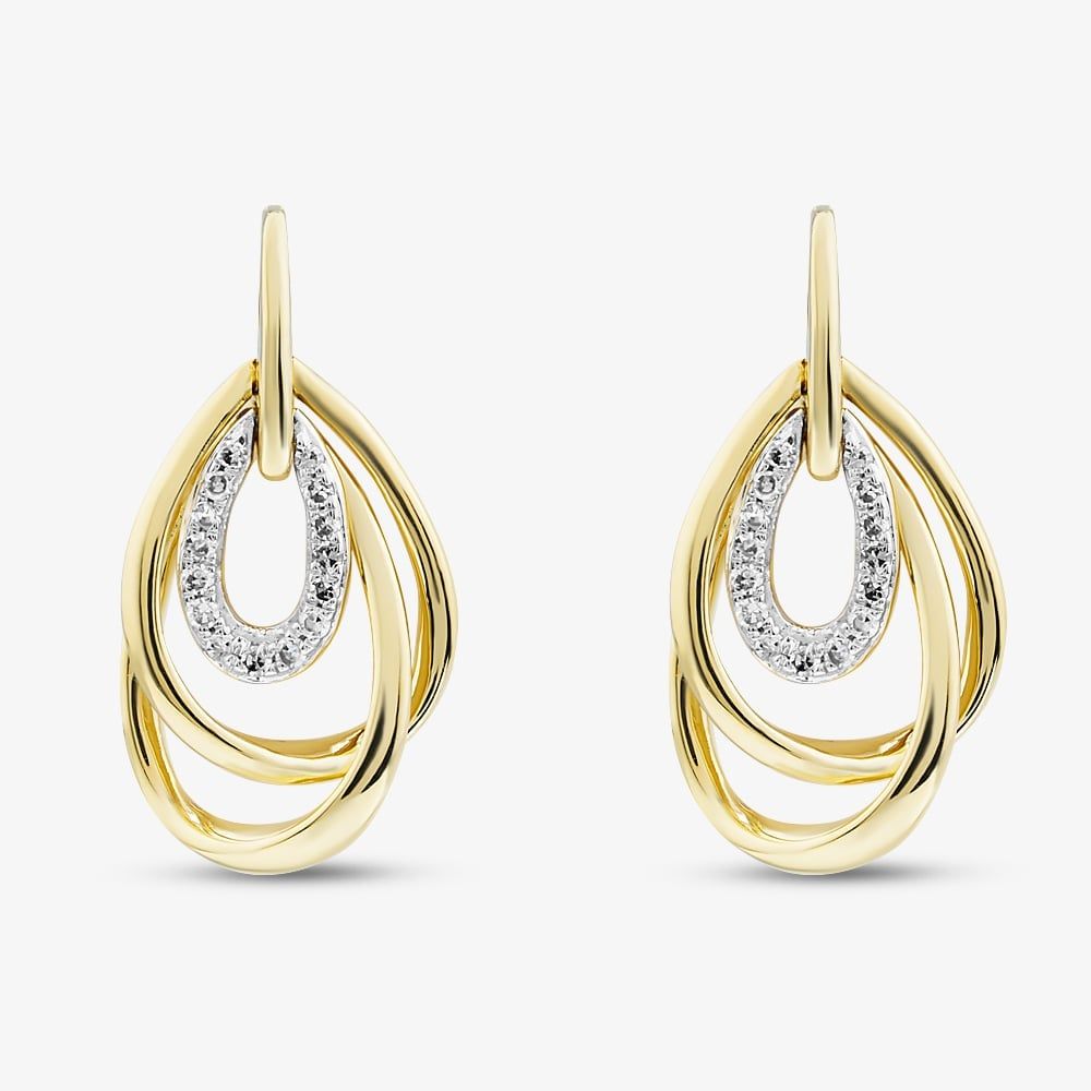 Enhance your jewellery collection with the gold-plated sterling silver dropper earrings featuring a triple oval design. The smaller oval is set with sparkling white lab-grown diamonds totalling 0.12ct, adding a subtle touch of brilliance. Finished with a post and butterfly fastening for a secure and comfortable fit, these elegant earrings are perfect for both everyday wear and special occasions.