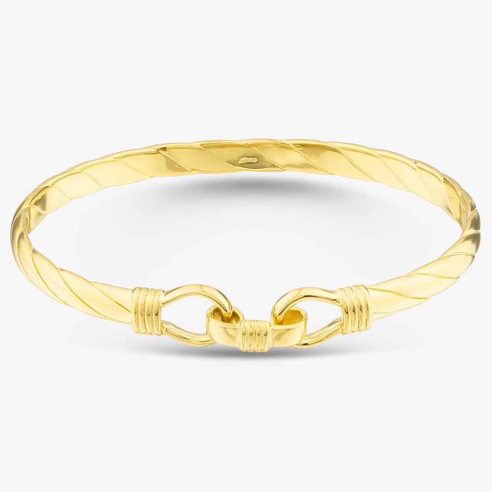 This gold-plated hook bangle, crafted from high-quality 925 sterling silver, brings sophistication to any look. Its sleek, minimalist design features a unique hook closure that adds a modern touch to a timeless piece. The rich gold plating and smooth, polished finish give it a luxurious glow, making it perfect for both everyday elegance and special moments.