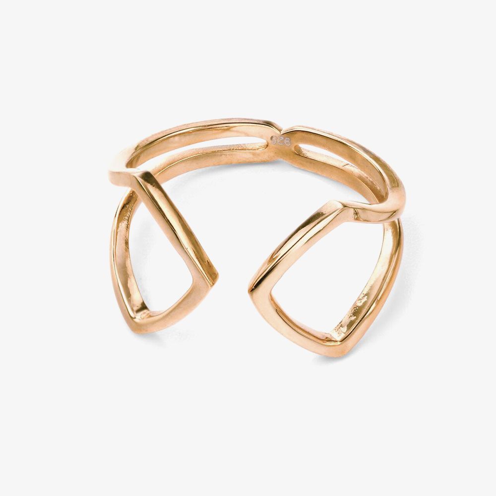 Introducing this stunning open arrow ring, crafted from sterling silver and plated in gold this unique ring is sure to make a great accessory to any outfit. Treat yourself or a loved one today.