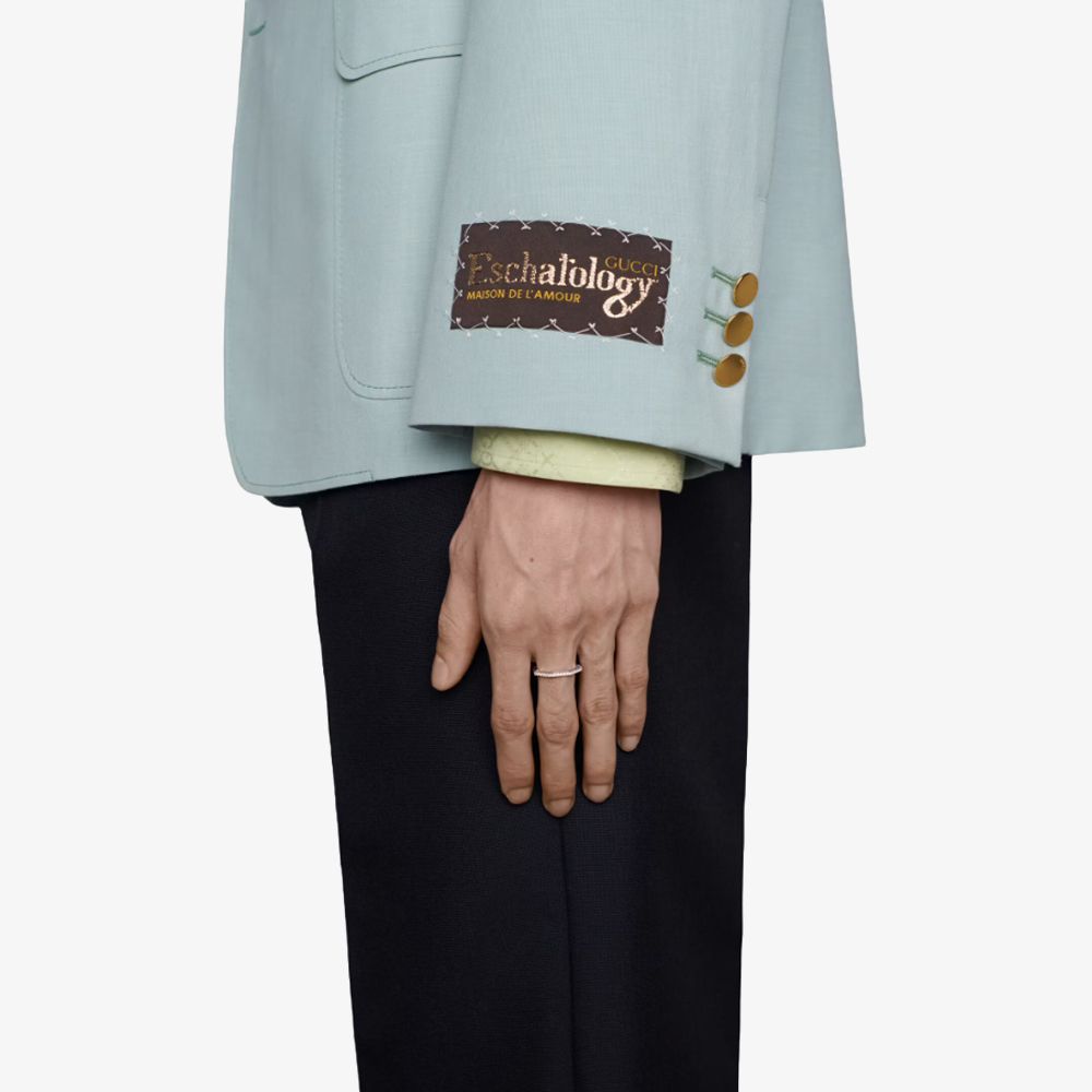 The Link to Love Collection from Gucci explores symbols of love and romance. Created in 18ct White Gold, this ring is set with 19 diamonds, giving a total weight of 0.16ct. This ring has a band width of 3 mm and has a stackable mechanism, allowing you to layer to create your own combinations.