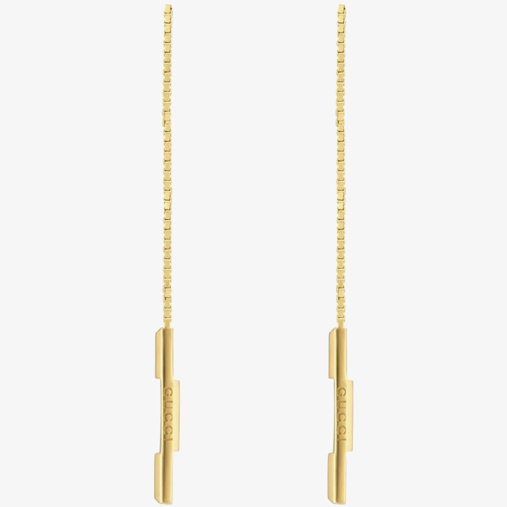 The Link to Love Collection from Gucci explores symbols of love and romance. These stylish chain dropper earrings are created in 18ct Yellow Gold and feature a Gucci engraved bar. The earrings are 12 cm in length and can be worn individually or with additional jewellery to create a stacking look.