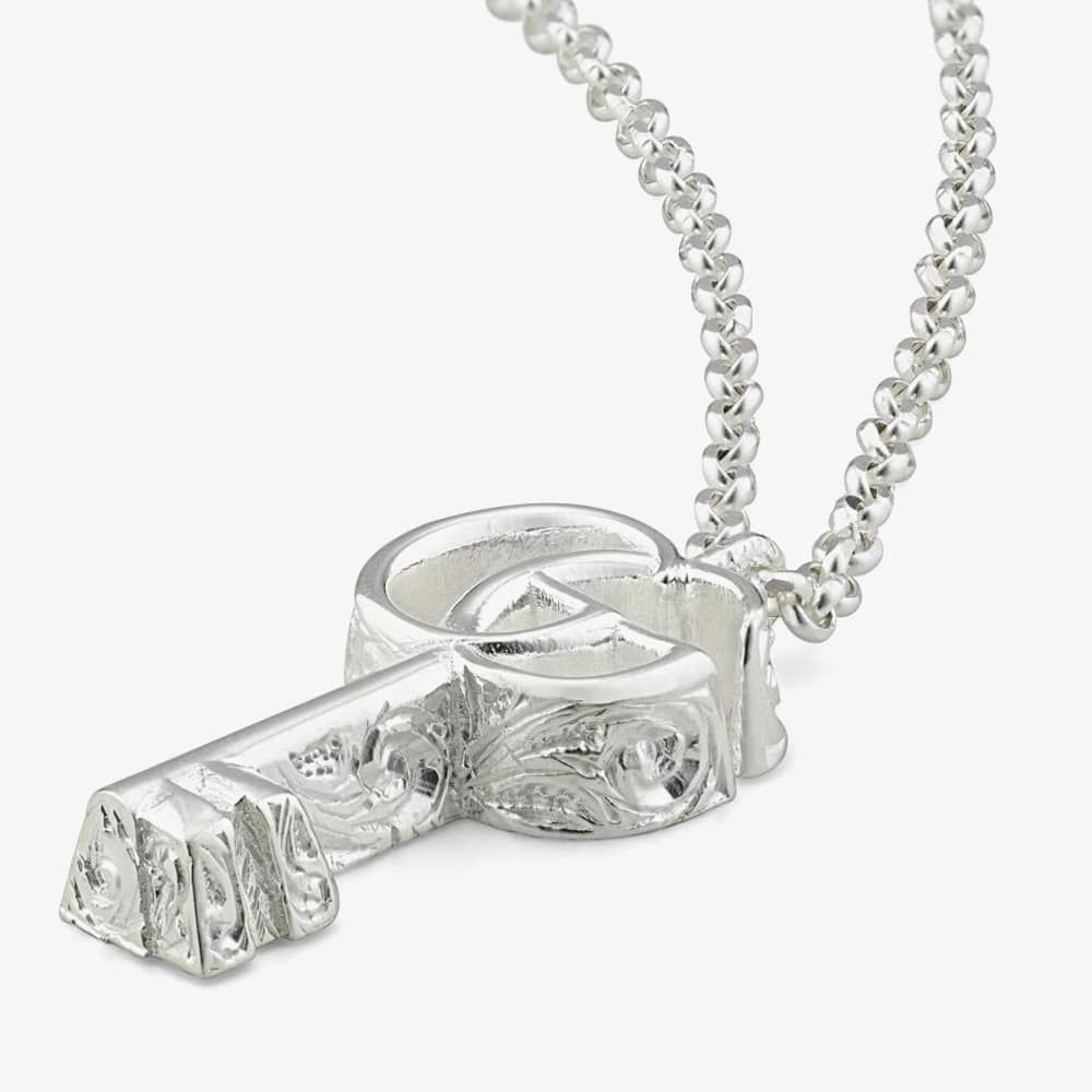 The Gucci GG Marmont necklace is a delicate yet statement piece that will add a touch of luxury to any outfit. Made from sterling silver, the necklace features a key pendant with the iconic Interlocking motif, engraved with a floral design. The key is suspended from a chain that can be adjusted to your desired length, making it comfortable to wear all day. Whether you're dressing up for a special occasion or simply running errands, the Gucci GG Marmont necklace is the perfect way to add a touch of sophistication to your look.