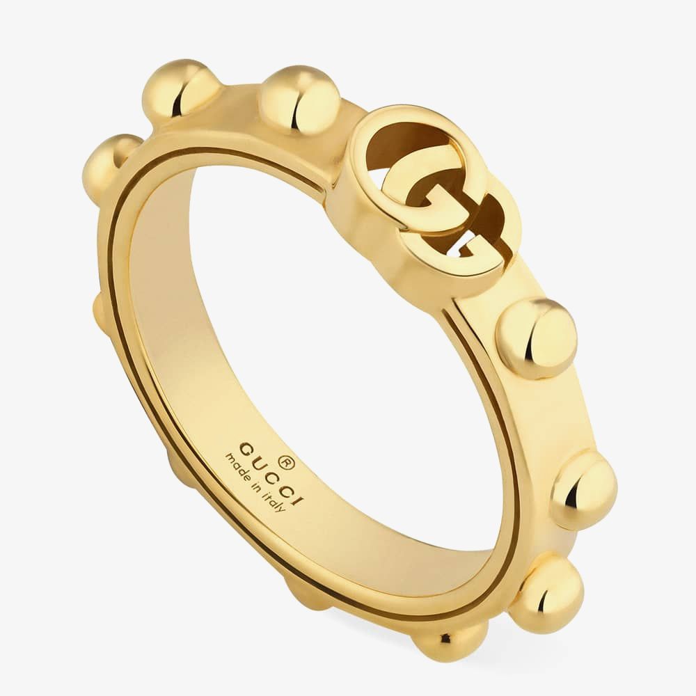 Crafted in 18ct gold, this stunning GG running ring features a studded design and is finished with the iconic double G motif - a distinctive code of the house.