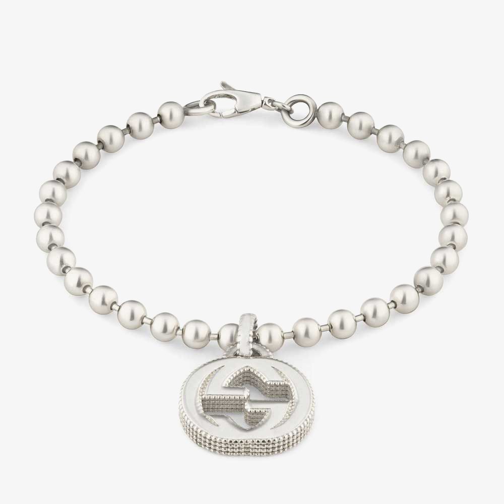 Introducing this stylish Gucci bracelet from the Interlocking collection, a prestigious accessory to bring extra glamour to your attire. The shimmering beaded bracelet design is crafted from sterling silver and features an impressive Interlocking motif with a chic mill grain edge. Pair with the matching ring and necklace to complete the look, buy with confidence.