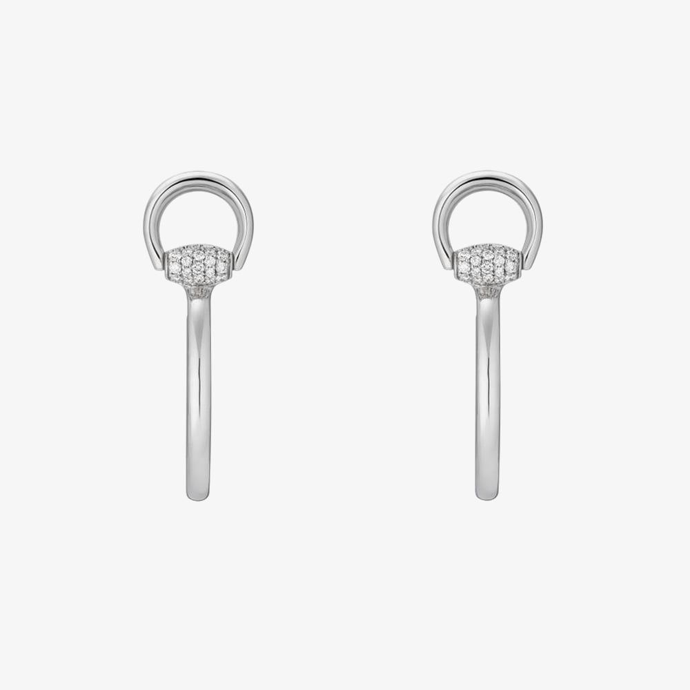 A statement of refined elegance, these Gucci Horsebit Drop Earrings embody the house’s legacy of craftsmanship and equestrian heritage. Exquisitely sculpted in 18ct white gold, the design reinterprets the iconic Horsebit motif in a fluid, hoop-inspired silhouette that drapes gracefully from the lobe. White diamonds trace the curves of the form, catching the light with every movement to create an aura of discreet opulence. Sophisticated yet distinctive, these earrings are a testament to Gucci’s timeless allure and impeccable attention to detail.