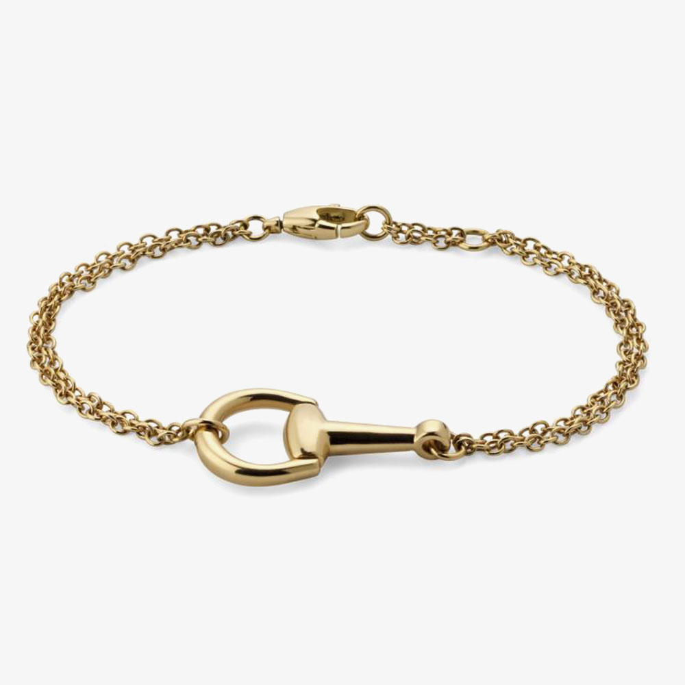 This exquisite chain bracelet marks the 20th anniversary of Gucci's iconic Horsebit jewellery line. Crafted in Italy from 18k yellow gold, it features a distinctive half-horsebit variation that highlights the signature detail of the collection. With a sturdy clasp closure for peace of mind, this bracelet is a truly timeless piece.