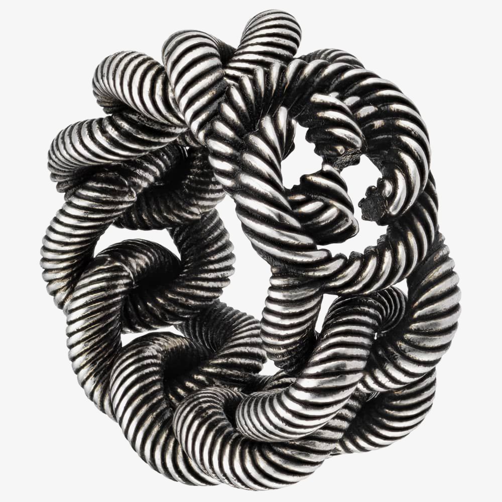 A unique aged silver open interlocking G design ring with patterned links all around, the perfect statement piece to add to your collection.