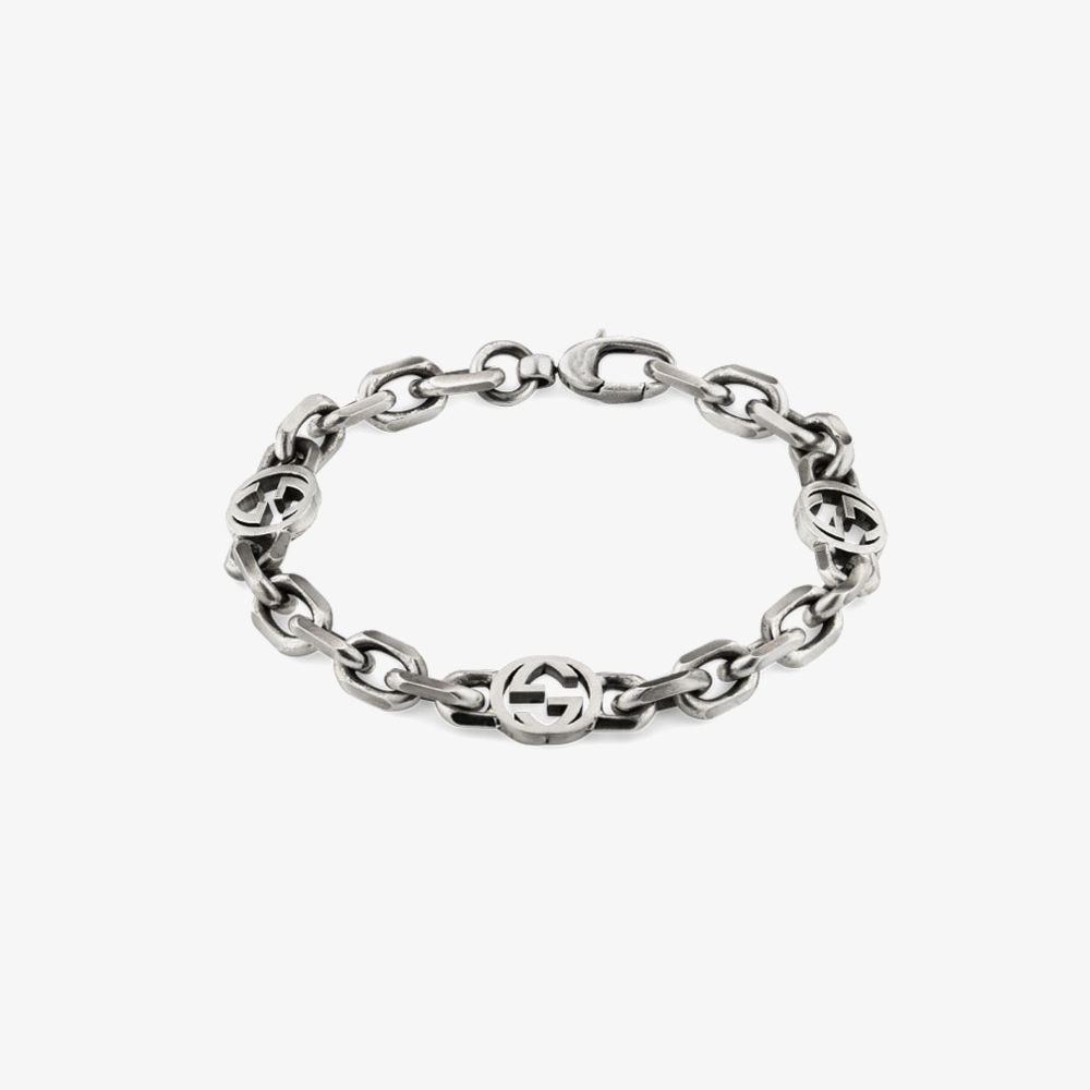 Part of the Interlocking collection from Gucci, this eye catching bracelet is created in sterling silver with an interlocking G design.