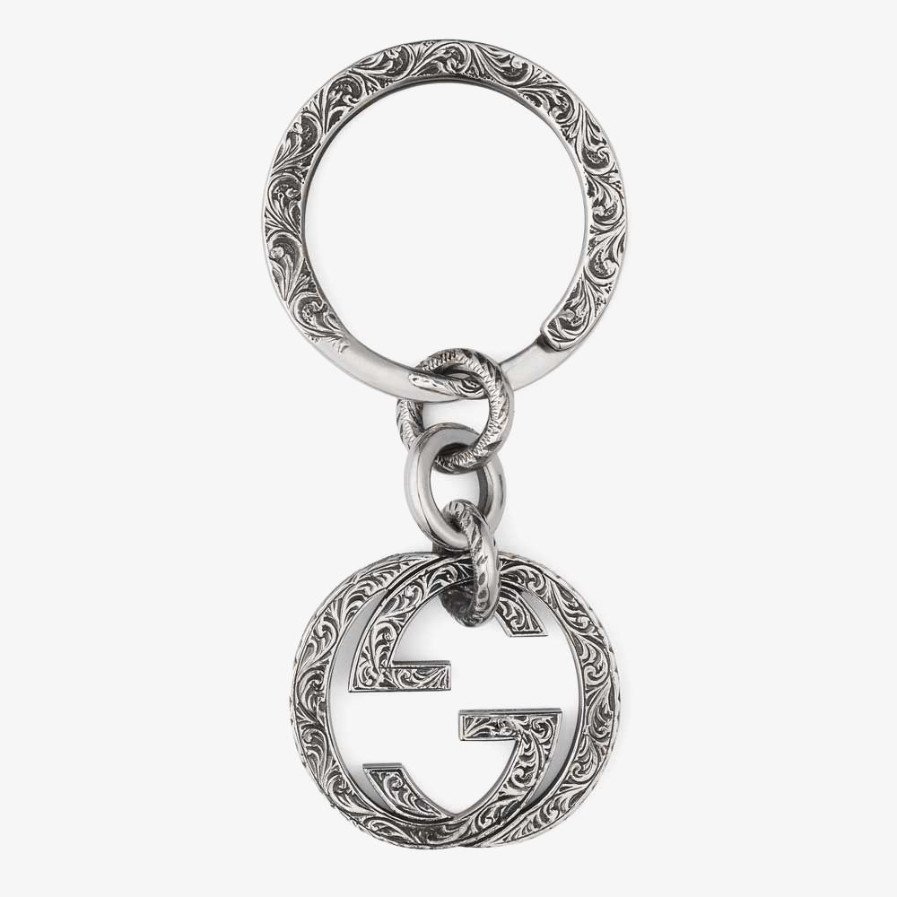 Keep your keys in check with this stunning sterling silver keyring, full of Gucci flare and style you will adore flaunting. The elegant design features the iconic Interlocking logo, embellished with an intricate filigree detailing. A wonderful gift for a fashionista, buy with confidence.