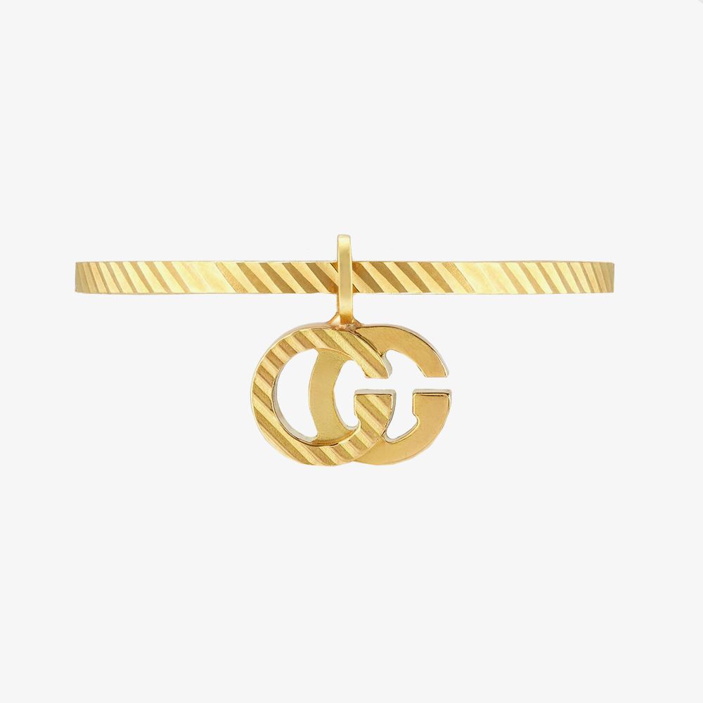 Providing a classy and sophisticated look for everyday and occasion wear alike, this simple Interlocking 'G' Textured Drop Gold Ring is an easy way to make a beautiful statement with its interlocking 'G' Gucci running stripe logo drop charm. Made from 18ct yellow gold, this ring is set to give an air of luxury to anyone who wears it.