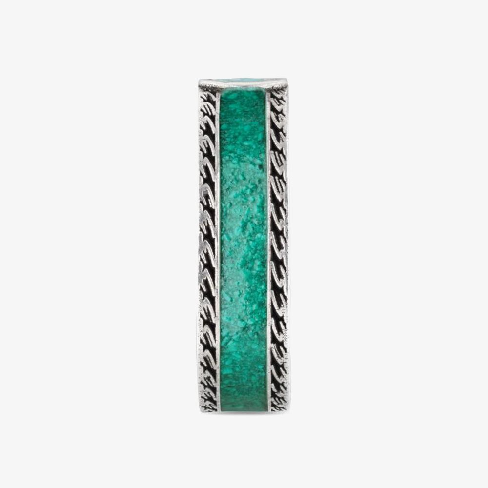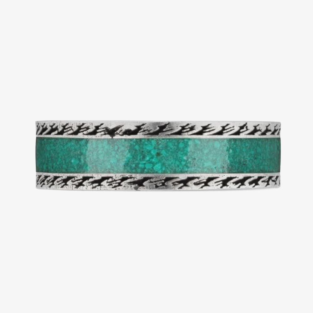 Providing a classy and sophisticated look for everyday and occasion wear alike, this simple silver Interlocking 'G' Turquoise Enamel Ring is an easy way to make a beautiful statement with its interlocking 'G' Gucci logo detail and polished appearance. Made from 925 sterling silver metal and featuring a textured trim and Gucci House symbols, this 'Epilogue' collection ring is set to suit everyone.