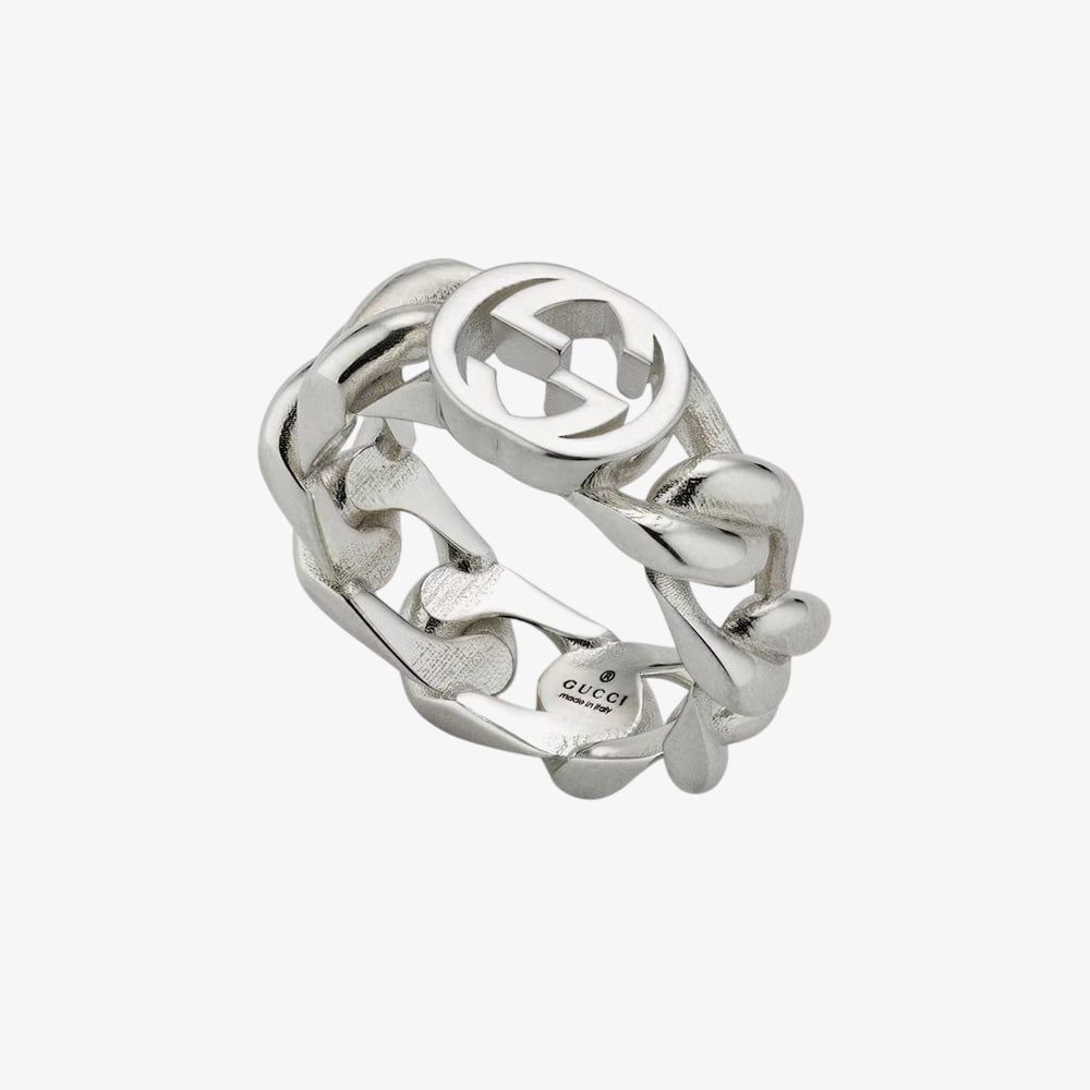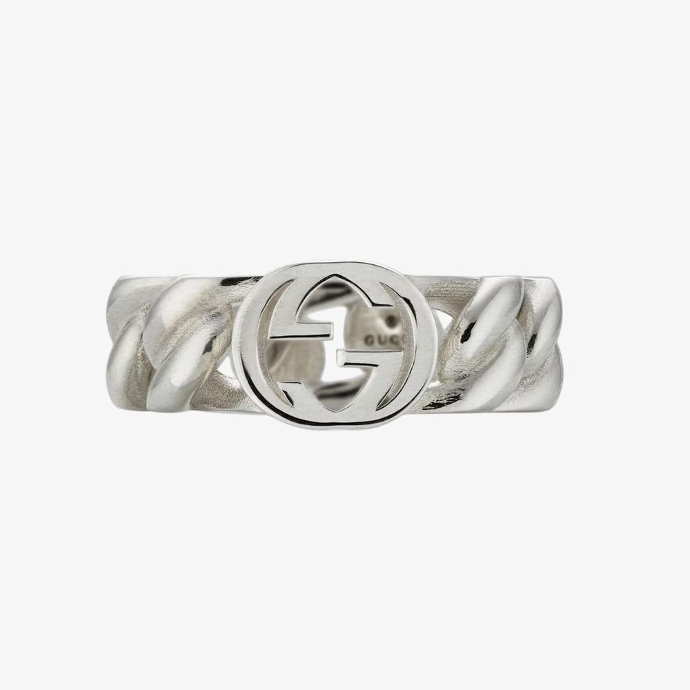 Part of the Fall Winter 2025 collection, this Gucci ring brings a contemporary edge to a classic symbol. Crafted in Italy from 925 sterling silver, the 7mm band features the iconic Interlocking G logo, offering a bold yet refined statement. The design reflects the House’s commitment to both timeless craftsmanship and high standards of social and environmental responsibility.