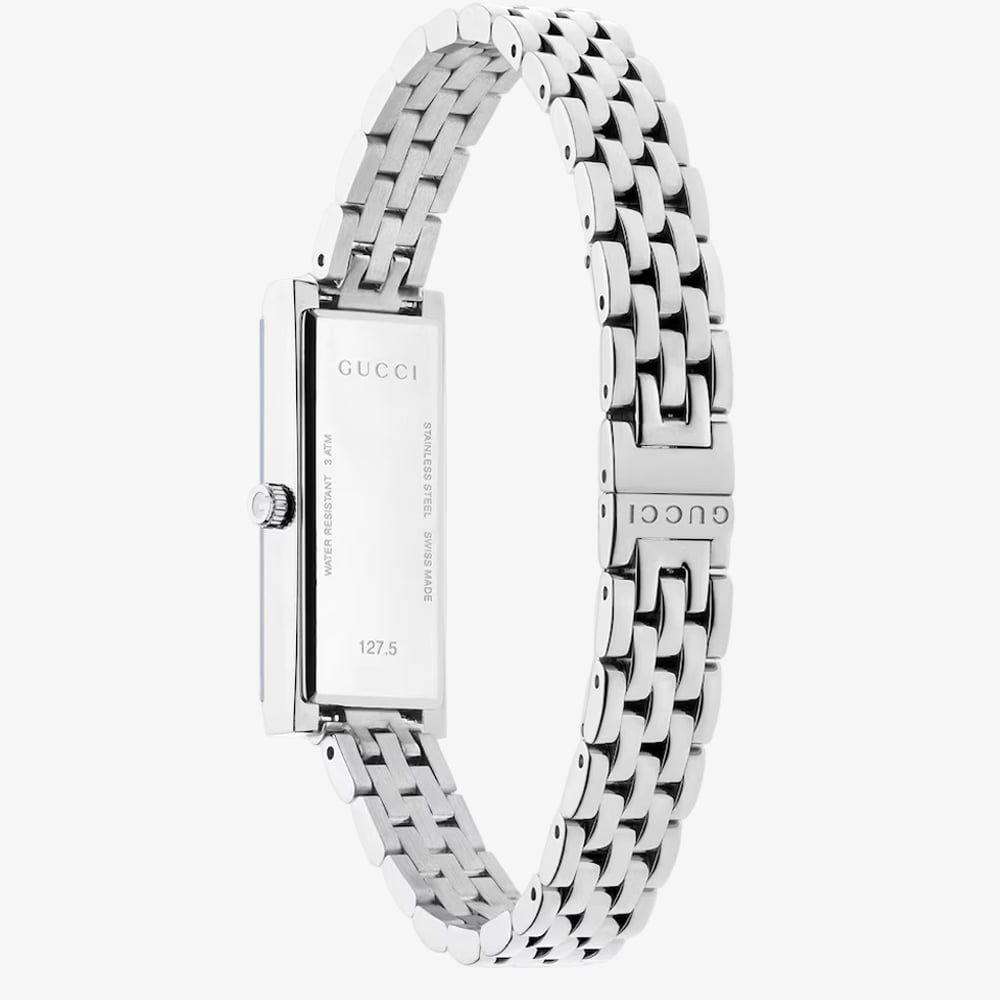• 30 metre water resistance.Guccihttps://www.thbaker.co.uk/media/catalog/product/2/4/24-14-25157009_gucci_03.jpghttps://www.thbaker.co.uk/media/catalog/product/2/4/24-14-25157009_gucci_04.jpghttps://www.thbaker.co.uk/media/catalog/product/2/4/24-14-25157009_gucci_02.jpgcondition:Nodisc_no_stock:Noex_display:NoNoNoNo241425157009GucciYA127517LadiesOfficial Gucci Packaging2 Year Gucci WarrantyLuxuryNoWatchSilverStainless Steel BraceletStainless SteelRectangle34.0mmAnalogueSapphire Crystal GlassBlueBlue30 metresQuartzSpecial ClaspSilverDiamondNoNoNoNoNoNoNo{"name":"v12_finance","text":"Or from \u00a324 per month","imageUrl":"https:\/\/www.thbaker.co.uk\/media\/nosto\/v12-finance.png"}Gucci Ladies G-Frame Blue Rectangular Dial Watch24-14-251570092026-03-31 00:00:000[{"path":"\/Watches","url":"\/watches\/"},{"path":"\/Brands A-Z\/Gucci","url":"\/gucci-jewellery\/"},{"path":"\/Watches\/Ladies Watches","url":"\/ladies-watches\/"},{"path":"\/Watches\/Designer Watches","url":"\/designer-watches\/"},{"path":"\/Watches\/Diamond Set Watches","url":"\/diamond-watches\/"},{"path":"\/Brands A-Z\/Gucci\/Gucci Watches","url":"\/gucci-watches\/"},{"path":"\/Brands A-Z\/Gucci\/Gucci Watches\/Gucci Ladies Watches","url":"\/gucci-ladies-watches\/"},{"path":"\/Brands A-Z\/Gucci\/Gucci Watches\/Gucci G-Frame Watches","url":"\/gucci-g-frame-watches\/"},{"path":"\/Watches\/Bracelet Watches","url":"\/bracelet-watches\/"},{"path":"\/Watches\/Quartz Watches","url":"\/quartz-watches\/"},{"path":"\/Watches\/Swiss Watches","url":"\/swiss-watches\/"},{"path":"\/Brands A-Z\/Gucci\/Gucci Ladies","url":"\/gucci-ladies\/"},{"path":"\/Watches\/Luxury Watches","url":"\/luxury-watches\/"},{"path":"\/Jewellery Gifts\/Luxury Gifts","url":"\/luxury-gifts\/"},{"path":"\/Free Gift Card - When you spend \u00a3500+","url":"\/free-gift-card\/"},{"path":"\/Watches\/Luxury Watches\/Ladies Luxury Watches","url":"\/ladies-luxury-watches\/"},{"path":"\/Spend over \u00a31000 and receive a \u00a3100 gift card","url":"\/gift-card-promotion\/"},{"path":"\/\u00a3150 Gold Gift Card (\u00a31000 - \u00a32000)","url":"\/150-gold-gift-card\/"},{"path":"\/Jewellery Gifts","url":"\/jewellery-gifts\/"},{"path":"\/Free Gift With Purchase Products","url":"\/free-gift-with-purchase-products\/"}]2026-03-31
