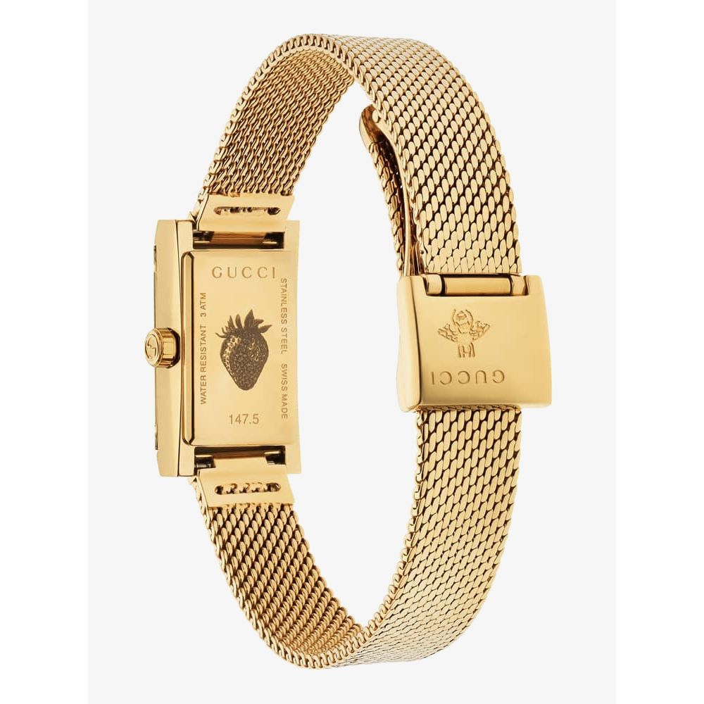 Elegant and refined, this stunning G-Frame watch features a multicolour signature stripe textured dial and an adjustable gold plated stainless steel mesh bracelet. This stylish time piece is decorated with gold plated square indexes and hands for a sleek and uniform appearance, making it the perfect watch for everyday wear. Finished with a fold over clasp fastening for easy wear and safe removal.
