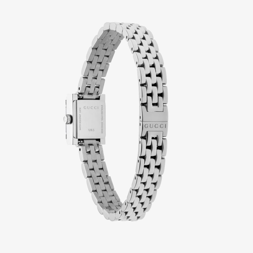 The G-Frame collection is distinguished by its elegant square-shaped case, seamlessly combining timeless heritage with modern design. Crafted from stainless steel, this exquisite timepiece is enhanced by a delicate pink dial adorned with sparkling diamonds, offering a perfect balance of sophistication and contemporary flair.