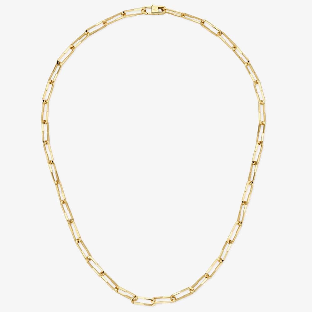 The Gucci Link To Love chain necklace is delicately made from 18ct yellow gold. Each link has a stylish design, with each link measuring 1.8mm in length. The necklace is securely fastened with a lobster claw clasp for a secure fit and measures 42cm in length.
