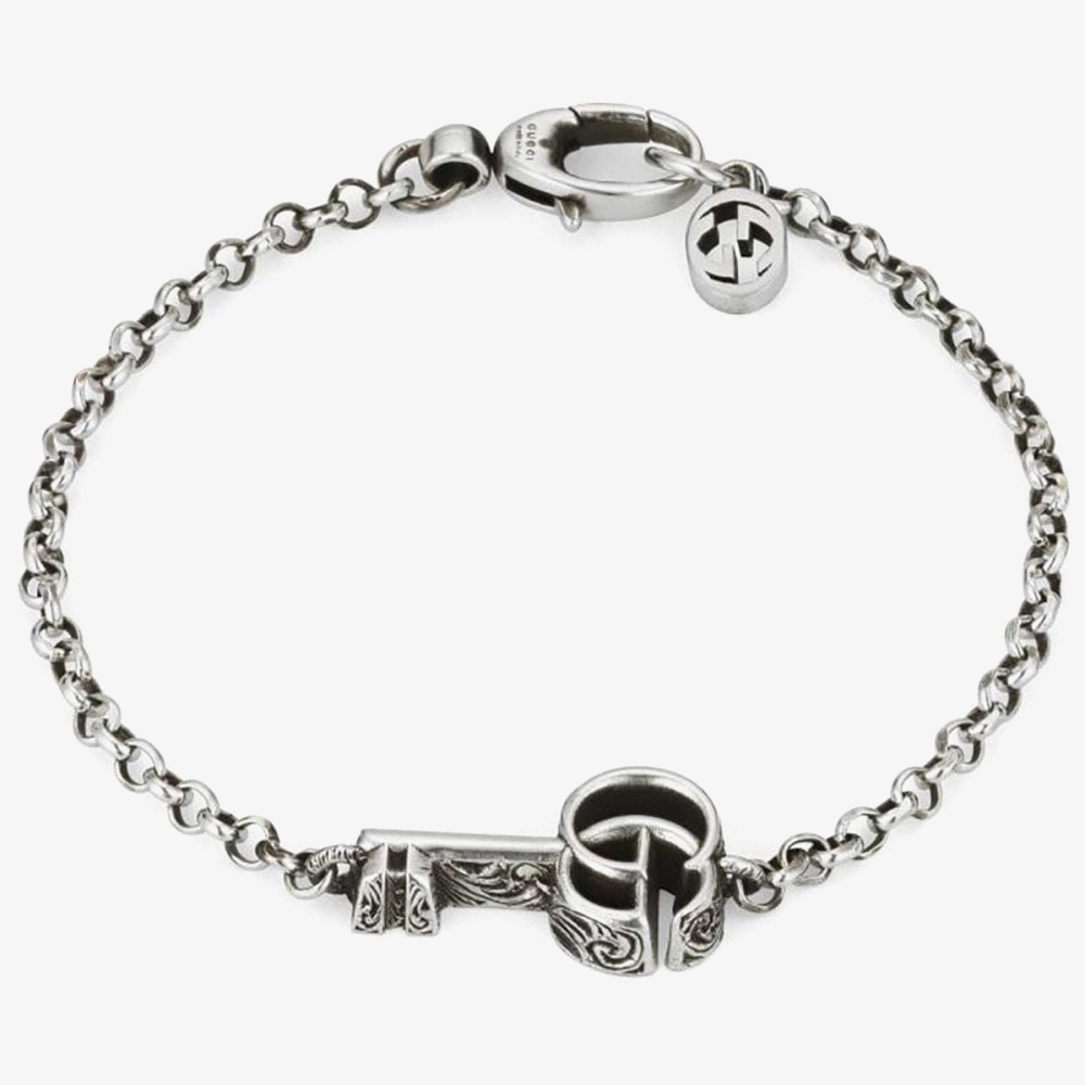 Part of the GG Marmont collection, this sterling silver bracelet features an eye catching key motif and an oxidised finish.