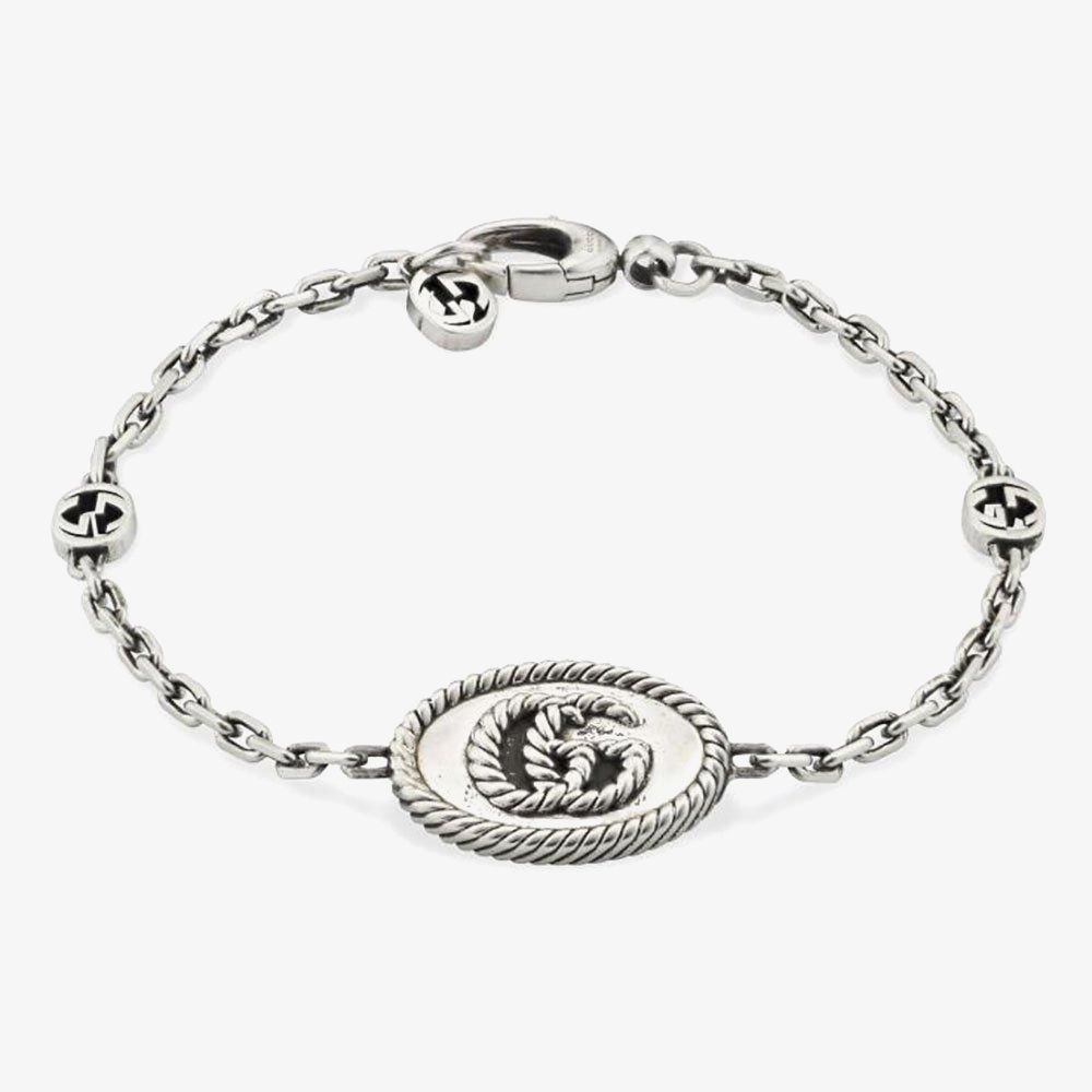 Part of the GG Marmont collection, this sterling silver bracelet features an oval shaped openwork pendant with a double G motif.