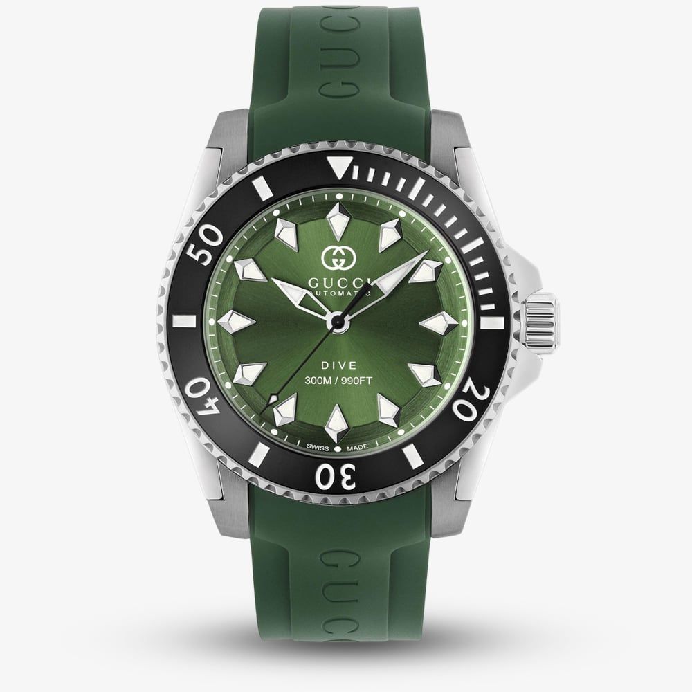 This watch showcases a vibrant green dial and matching rubber strap, creating a fresh, modern look with a sporty edge. Its stainless steel case is built for durability, featuring a unidirectional rotating bezel and luminous hands and markers for optimal readability, even in low-light or underwater conditions. With an impressive water resistance up to 300 metres, this watch is both fashionable and functional.