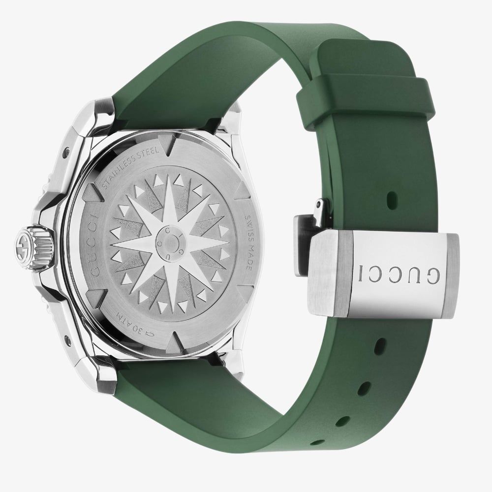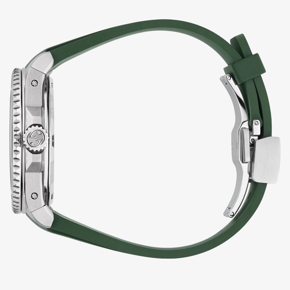 • Presented on a green rubber strap with traditional buckle.