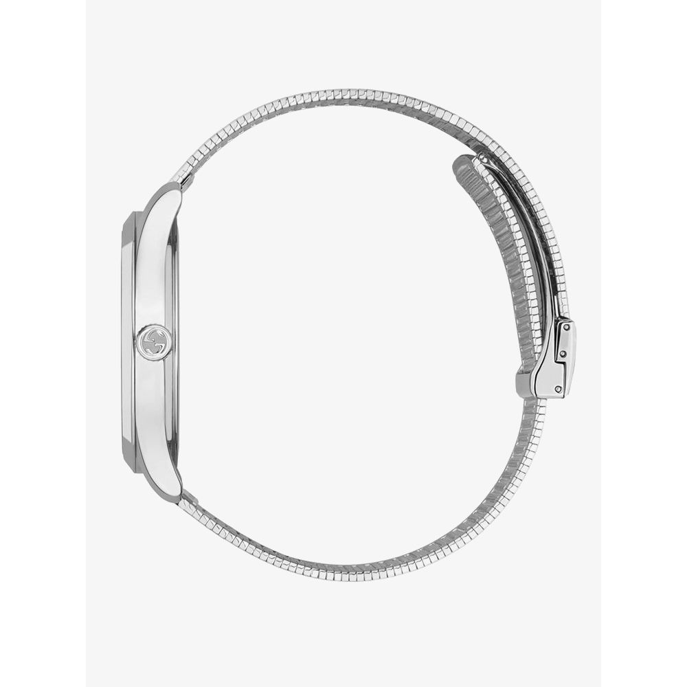 Crafted in sterling silver, this stunning G-Timeless watch features an eye catching blue and red snake design that adorns the dial and the bracelet. The watch dial is also embellished with the iconic Gucci bee motif at 12 o'clock. The watch is finished with a fold over clasp fastening.