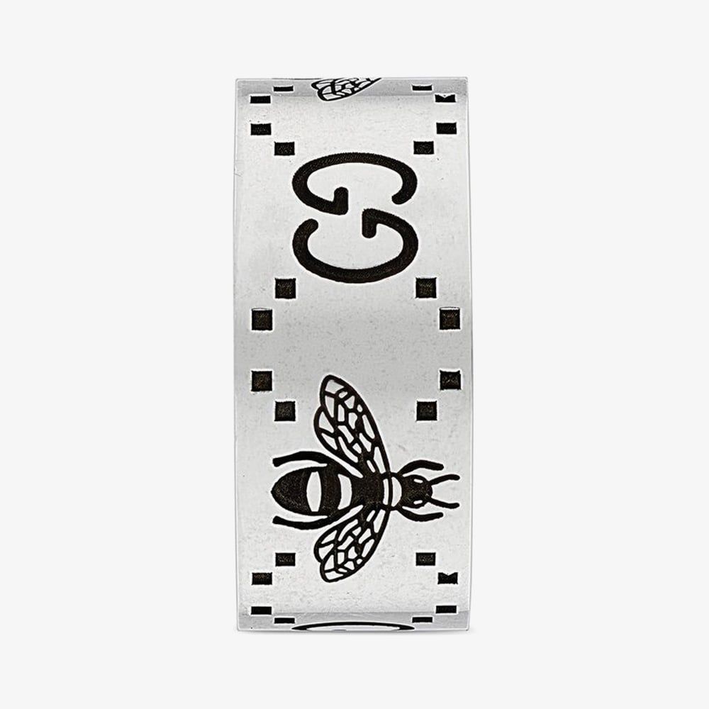 Gucci Signature Silver GG & Bee 9mm Band Ring YBC7283040010
