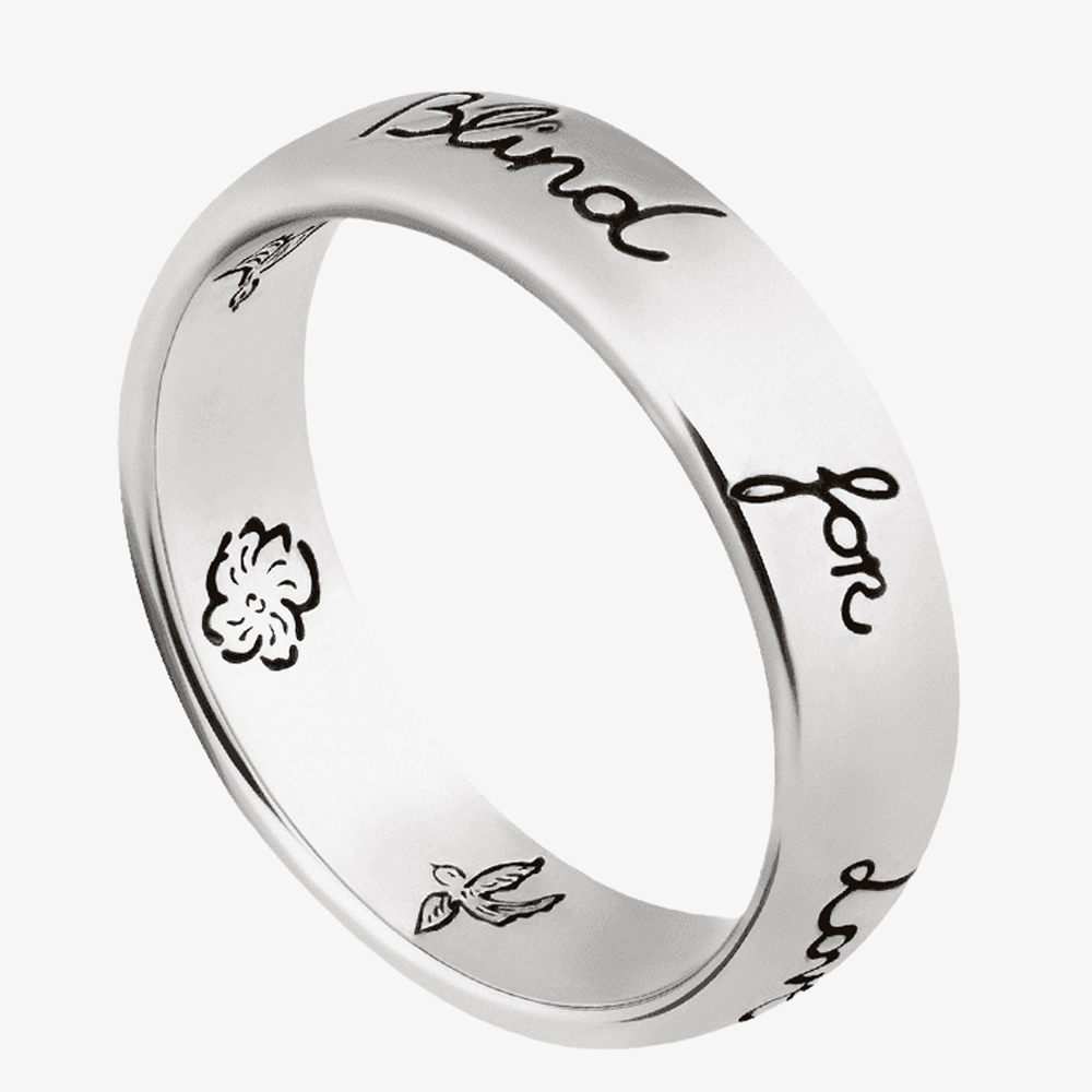 Gucci Blind 4 Love Silver 5mm Band Ring YBC455247001 Gucci Blind 4 Love Silver 5mm Band Ring YBC455247001