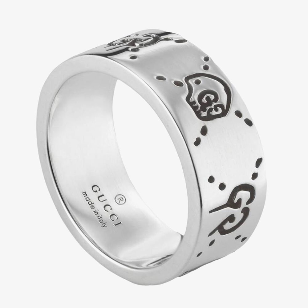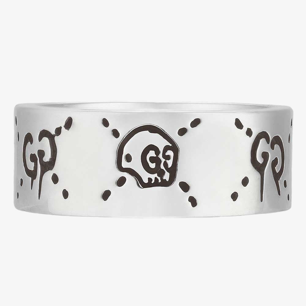 Gucci presents this piece designed by Brooklyn based artist Trouble Andrew. Alessandro Michele invited the artist to collaborate on the Fall/Winter 2016 fashion show collection by incorporating his artwork into the designs. The result is a combination of two cultures representing both the past and present, decorated with engraved Gucci Ghost motifs around the entirety.