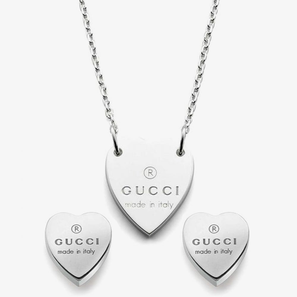 Sterling silver elegance for you to adorn your outfits with. The sleek belcher necklace holds a simple and stylish heart engraved with the Gucci logo securely fastening with a lobster style clasp. The ideal gift for your special someone this season, buy with confidence.