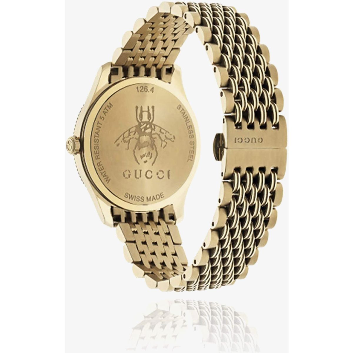 https://www.thbaker.co.uk/gucci-unisex-timeless-gold-plated-bee-watch-ya126415591927Gucci Unisex G-Timeless Gold Plated Bee Watch YA1264155https://www.thbaker.co.uk/media/catalog/product/2/4/24-16-090_grey.jpg9951350GBPOutOfStockT/LESS 36MM GP BW BEE SIL Crafted with a traditional sensibility, this bee motif timepiece is the perfect accessory for everyday wear. Created in stainless steel with a yellow gold PVD, the piece features a contrasting sun brushed dial. The bee motif of the piece is specially designed to work as a seconds hand. Guccihttps://www.thbaker.co.uk/media/catalog/product/y/a/ya1264155-3_grey_1.jpghttps://www.thbaker.co.uk/media/catalog/product/y/a/ya1264155-2_grey_1.jpghttps://www.thbaker.co.uk/media/catalog/product/2/4/24-6-090_03_model.jpghttps://www.thbaker.co.uk/media/catalog/product/2/4/24-6-090_04_model_1.jpg731903479920condition:Nodisc_no_stock:Yesex_display:NoNoYesNo2416090GucciYA1264155UnisexOfficial Gucci Packaging2 Year Gucci WarrantyLuxuryNoWatchGoldStainless Steel BraceletStainless SteelRound12.0mm36mmAnalogueSapphire Crystal GlassSilver50 metresQuartzPush Button Deployment ClaspNoNoNoNoNoNoNoGucci Unisex G-Timeless Gold Plated Bee Watch24-16-0902020-08-27 00:00:00[]2020-08-27