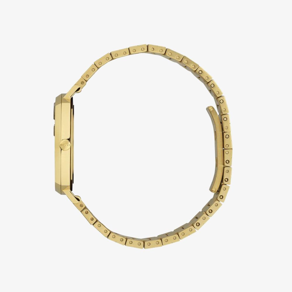 Crafted with a traditional sensibility, this bee motif timepiece is the perfect accessory for everyday wear. Created in stainless steel with a yellow gold PVD, the piece features a contrasting sun brushed dial. The bee motif of the piece is specially designed to work as a seconds hand.