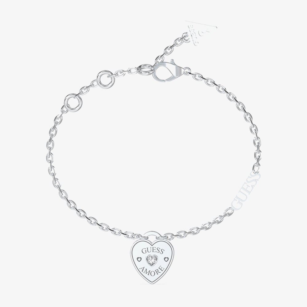 Elegant and timeless, the Amore Silver Heart Charm Bracelet is crafted from durable stainless steel with a sleek rhodium silver finish. The centrepiece is a delicate heart charm, embellished with sparkling white crystals for a touch of shimmer and romance. Finished with a lobster clasp for a secure fit. Perfect for layering or wearing solo.