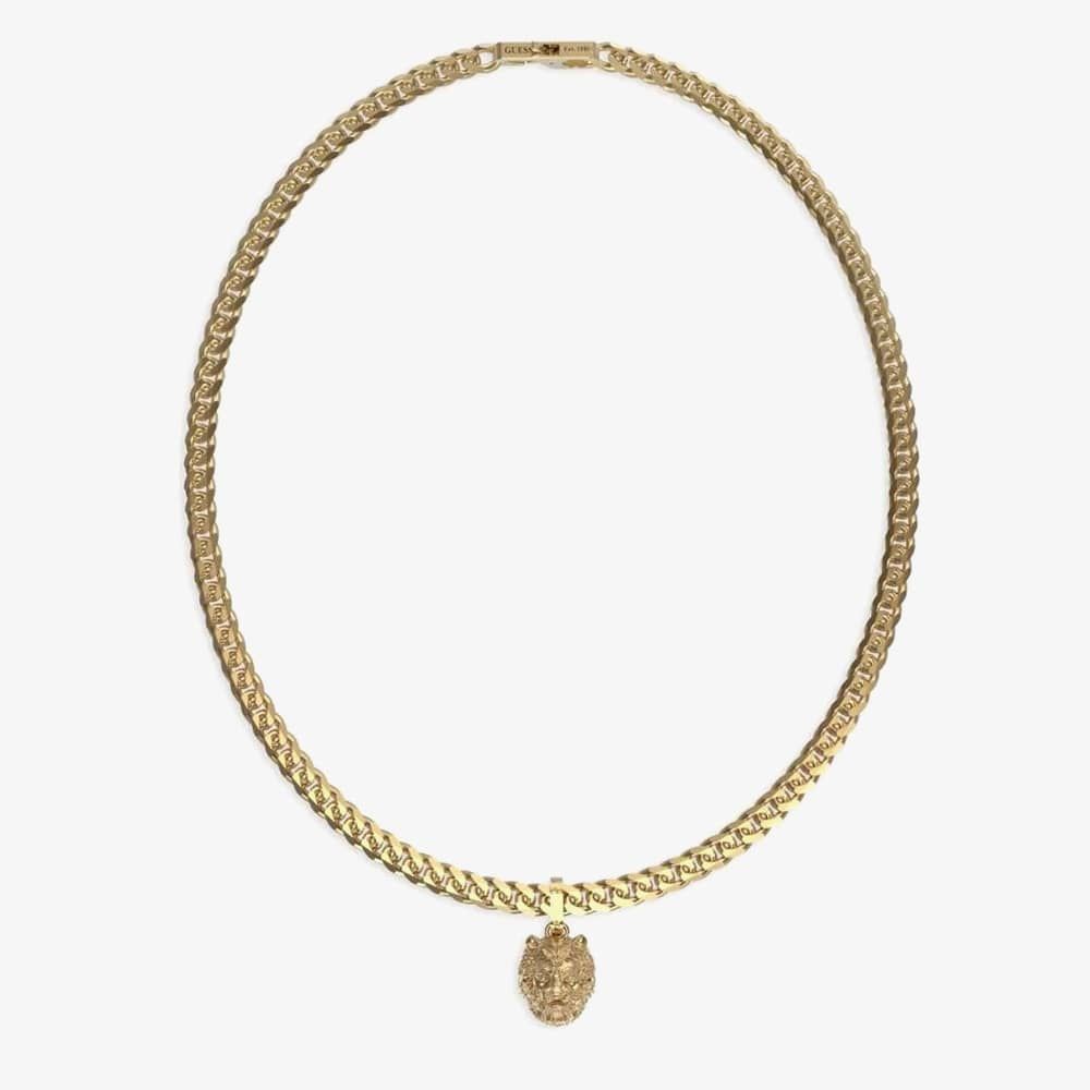 Command attention with the Guess Lion King Necklace, featuring a bold gold-plated lion head pendant. Symbolising strength and confidence, this striking piece brings a fierce, fashion-forward edge to any outfit.