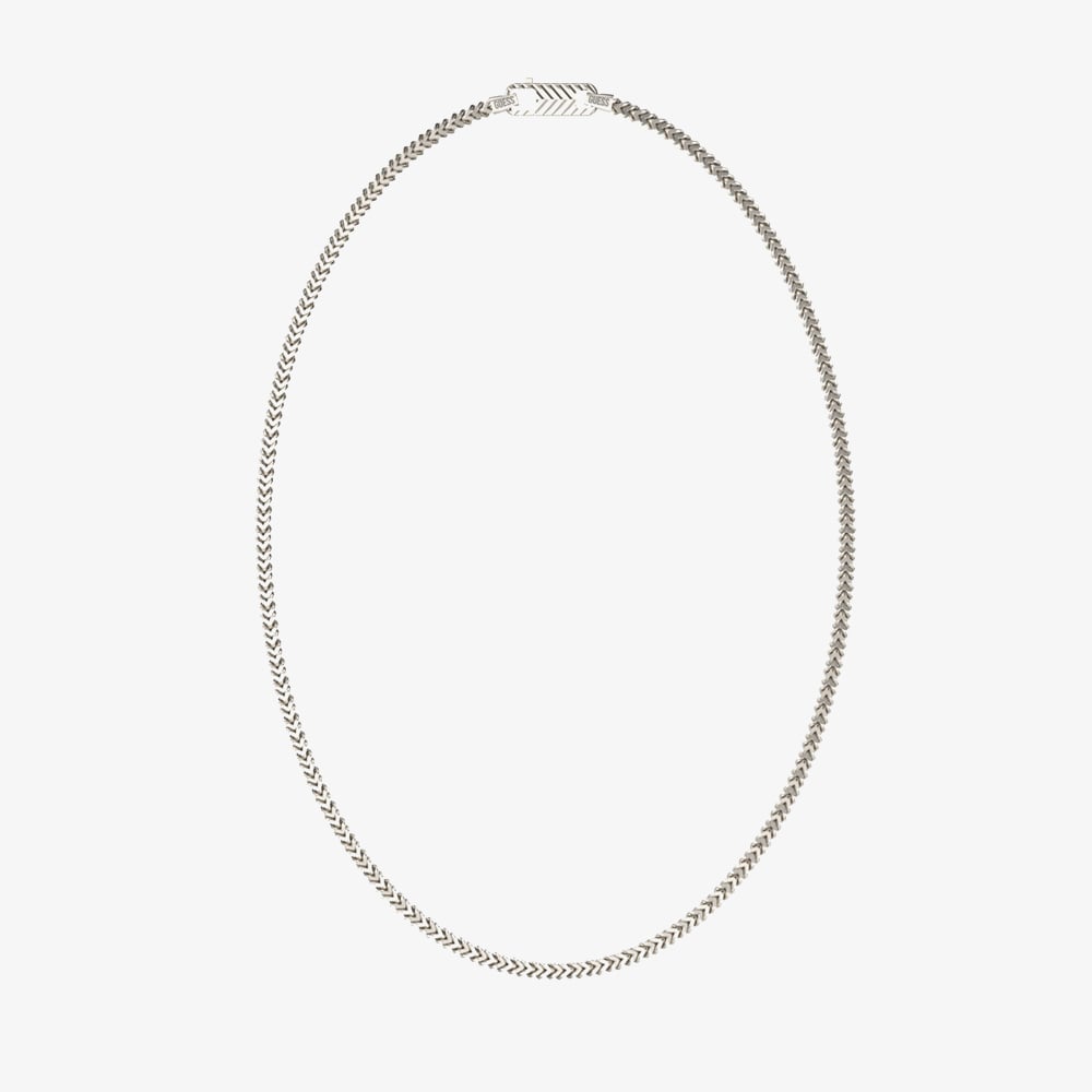 The Guess Men's Pitstop Necklace features a textured clasp paired with a bold foxtail chain, combining rugged design with modern sophistication.