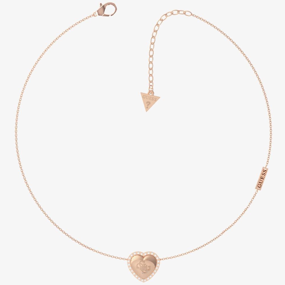 This on trend necklace has been crafted from rose gold plated stainless steel & features a delicate belcher chain with a heart shape drop charm, sparkling clear crystals and the iconic 4G Guess Logo in the centre. All finished with an adjustable lobster clasp fastening so can be worn to suit your style.