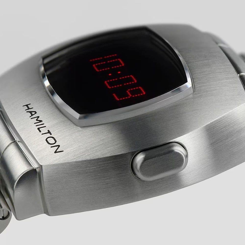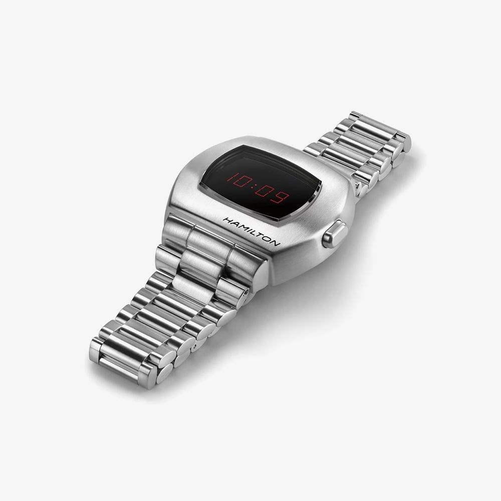 The Hamilton American Classic PSR Digital Watch is a modern tribute to the iconic digital timepiece that revolutionized watchmaking in the 1970s. Crafted from stainless steel, this watch blends retro style with contemporary sophistication. Its sleek digital display offers clear time readings, while the durable stainless steel case and bracelet ensure lasting quality. The PSR Digital Watch captures the spirit of innovation and timeless design, making it a standout piece in any collection.