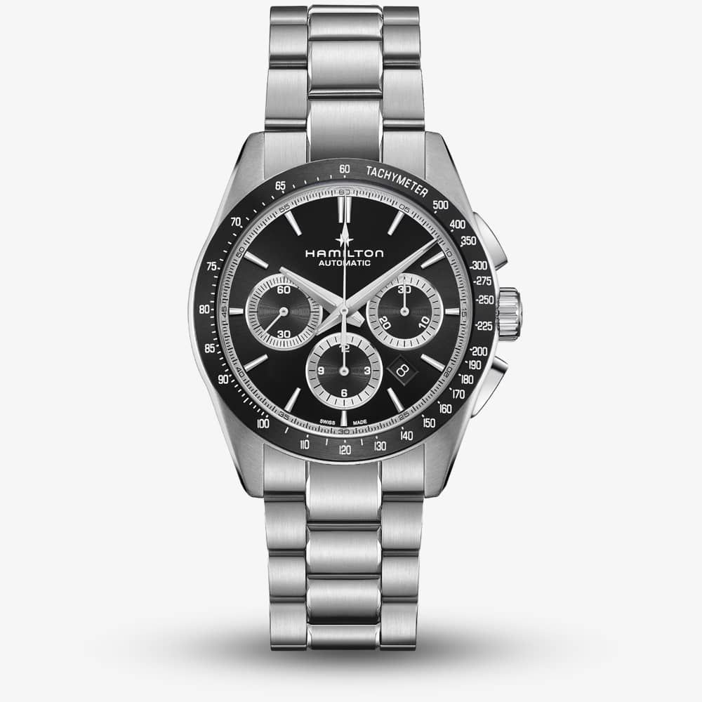 Crafted for those who prioritize function and style, the Jazzmaster Performer line delivers a powerful sport-chic appearance. Featuring the H-31 automatic chronograph movement with a 60-hour power reserve, this Jazzmaster Performer Automatic Chronograph boasts a stainless steel case complemented by a sleek black dial and an assertive stainless steel bracelet