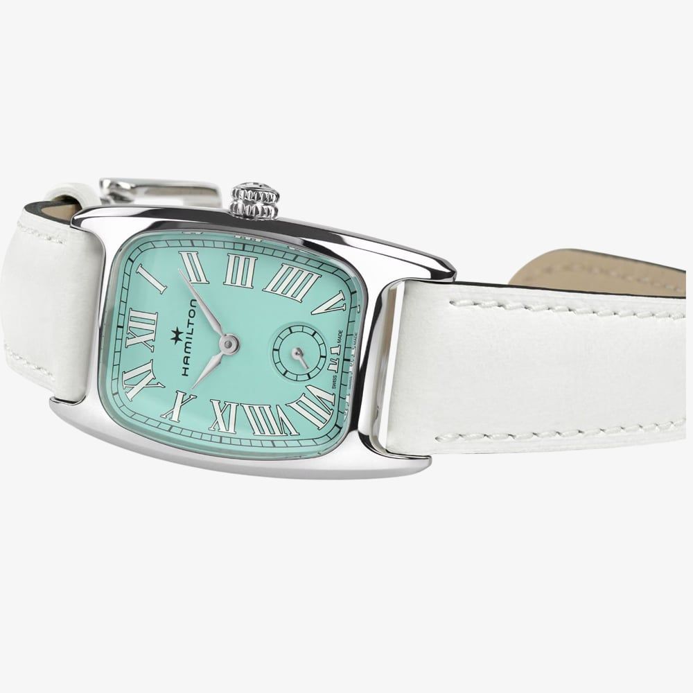 A sophisticated blend of vintage-inspired design and contemporary flair. This exquisite timepiece reimagines the iconic Boulton silhouette with a captivating green dial and refined details, making it a statement accessory offering elegance with a touch of individuality. The watch showcases the signature elongated rectangular case of the Boulton collection, a design that exudes Art Deco charm and sets it apart. The polished finish of the case enhances its elegant appeal. The captivating green dial adds a touch of modern sophistication and personality to this classic design. The colour is both eye-catching and versatile, complementing a range of styles.