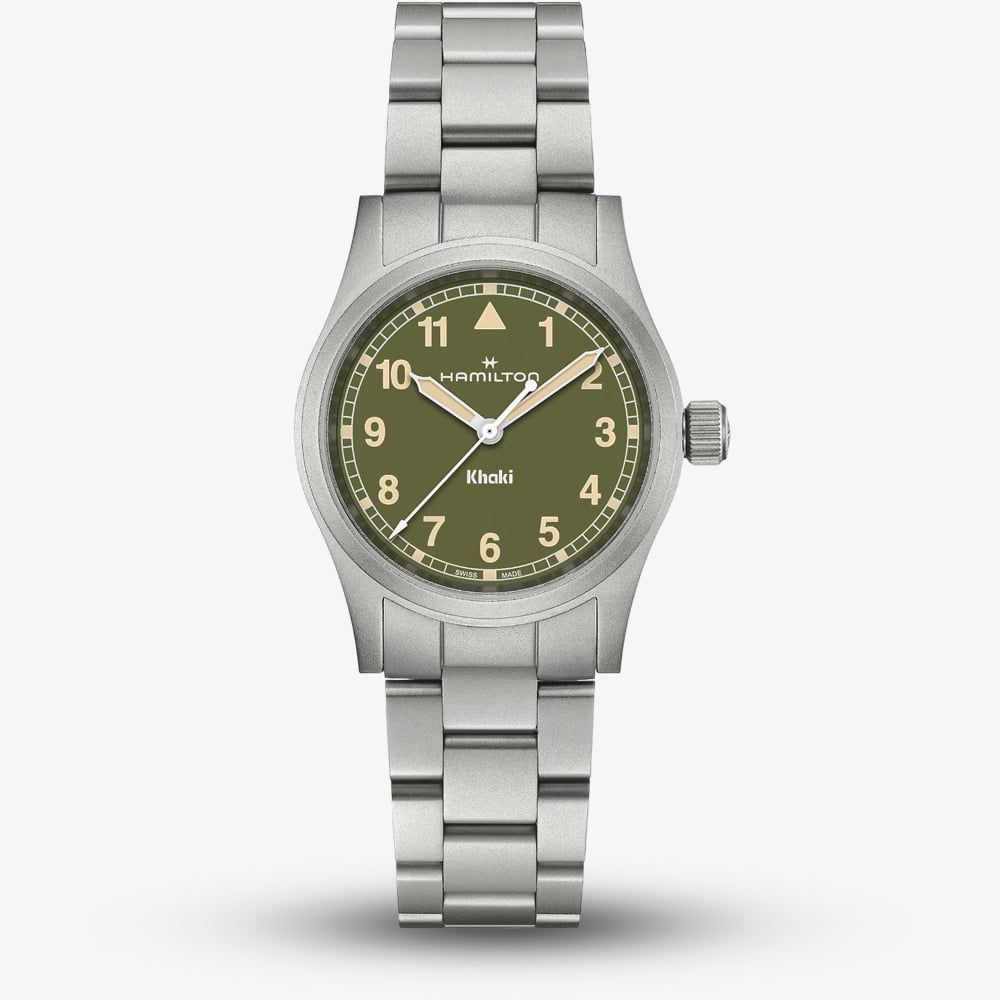 https://www.thbaker.co.uk/hamilton-ladies-khaki-field-quartz-33mm-green-dial-watch-h69301160159005Hamilton Ladies Khaki Field Quartz 33mm Green Dial Watch H69301160https://www.thbaker.co.uk/media/catalog/product/2/4/24-31-25137220_hamilton_01.jpg425425GBPOutOfStockKhaki Field Quartz 33mm Ss Bw Khaki Dial A refined nod to Hamilton’s military heritage, offering a compact and rugged design tailored for those who appreciate classic field watch aesthetics in a smaller size. Combining military-inspired design with modern functionality, making it an ideal choice for those seeking a reliable and stylish timepiece in a compact size.