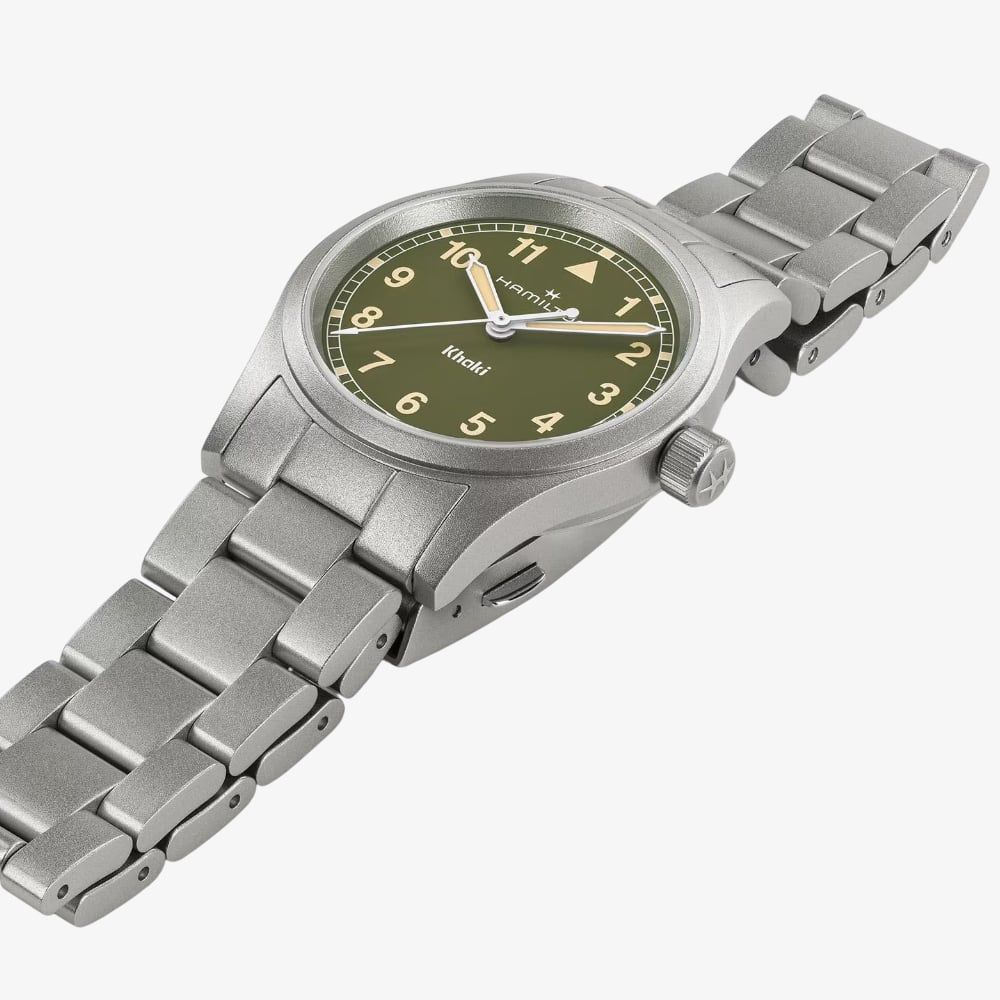 A refined nod to Hamilton’s military heritage, offering a compact and rugged design tailored for those who appreciate classic field watch aesthetics in a smaller size. Combining military-inspired design with modern functionality, making it an ideal choice for those seeking a reliable and stylish timepiece in a compact size.