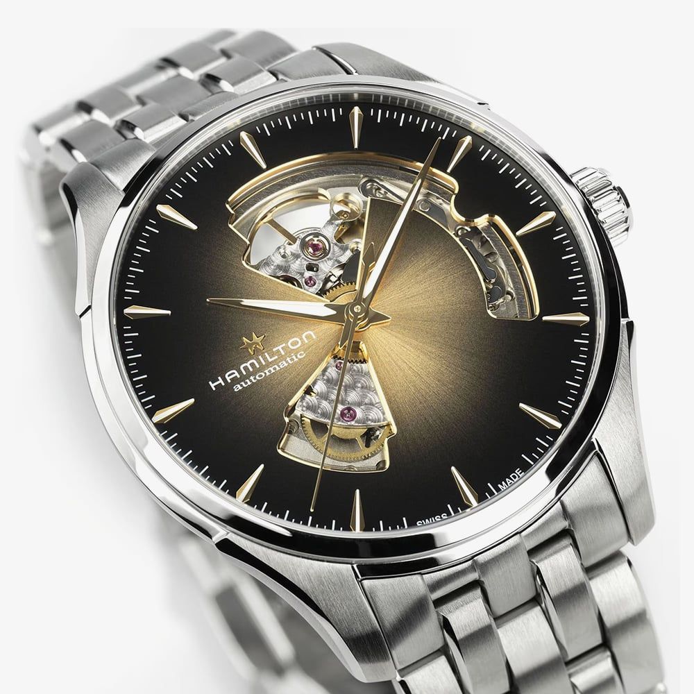 • 50 metre water resistance.Hamiltonhttps://www.thbaker.co.uk/media/catalog/product/2/4/24-31-25155084_hamilton_02.jpghttps://www.thbaker.co.uk/media/catalog/product/2/4/24-31-25155084_hamilton_03.jpghttps://www.thbaker.co.uk/media/catalog/product/2/4/24-31-25155084_hamilton_04.jpghttps://www.thbaker.co.uk/media/catalog/product/2/4/24-31-25155084_hamilton_05.jpghttps://www.thbaker.co.uk/media/catalog/product/2/4/24-31-25155084_hamilton_model_01.jpg7630458806294condition:Noex_display:NoNoNoHamiltonH32675101MensOfficial Hamilton Packaging2 Year Hamilton WarrantyLuxuryNoWatchSilverStainless Steel BraceletStainless SteelRound11.1mm40.0mmAnalogueSapphire Crystal GlassBlackBlack50 metresAutomaticPush Button Deployment ClaspNo StoneNo StoneNoNoNoNoNoYesNo243125155084Hamilton Mens Jazzmaster Open Heart Auto 40mm Bracelet Watch24-31-251550842026-02-23 00:00:0002026-02-23