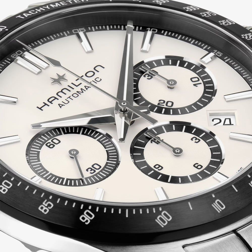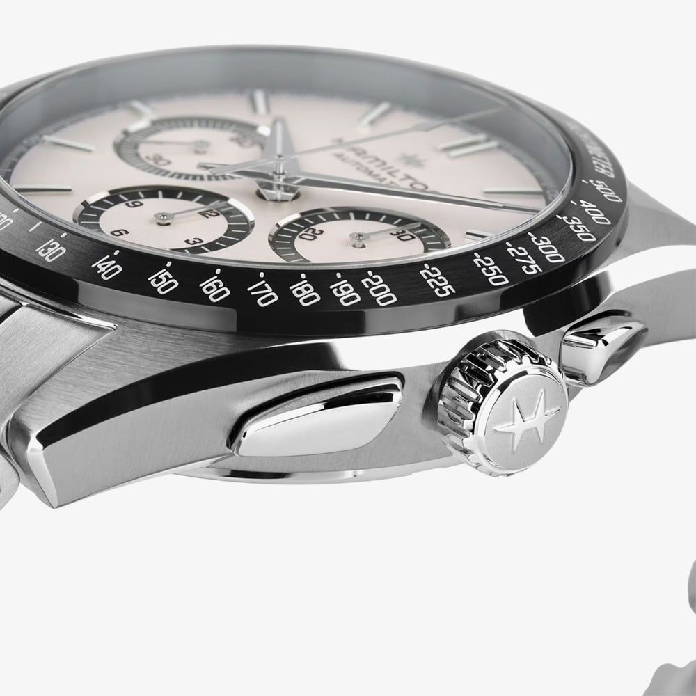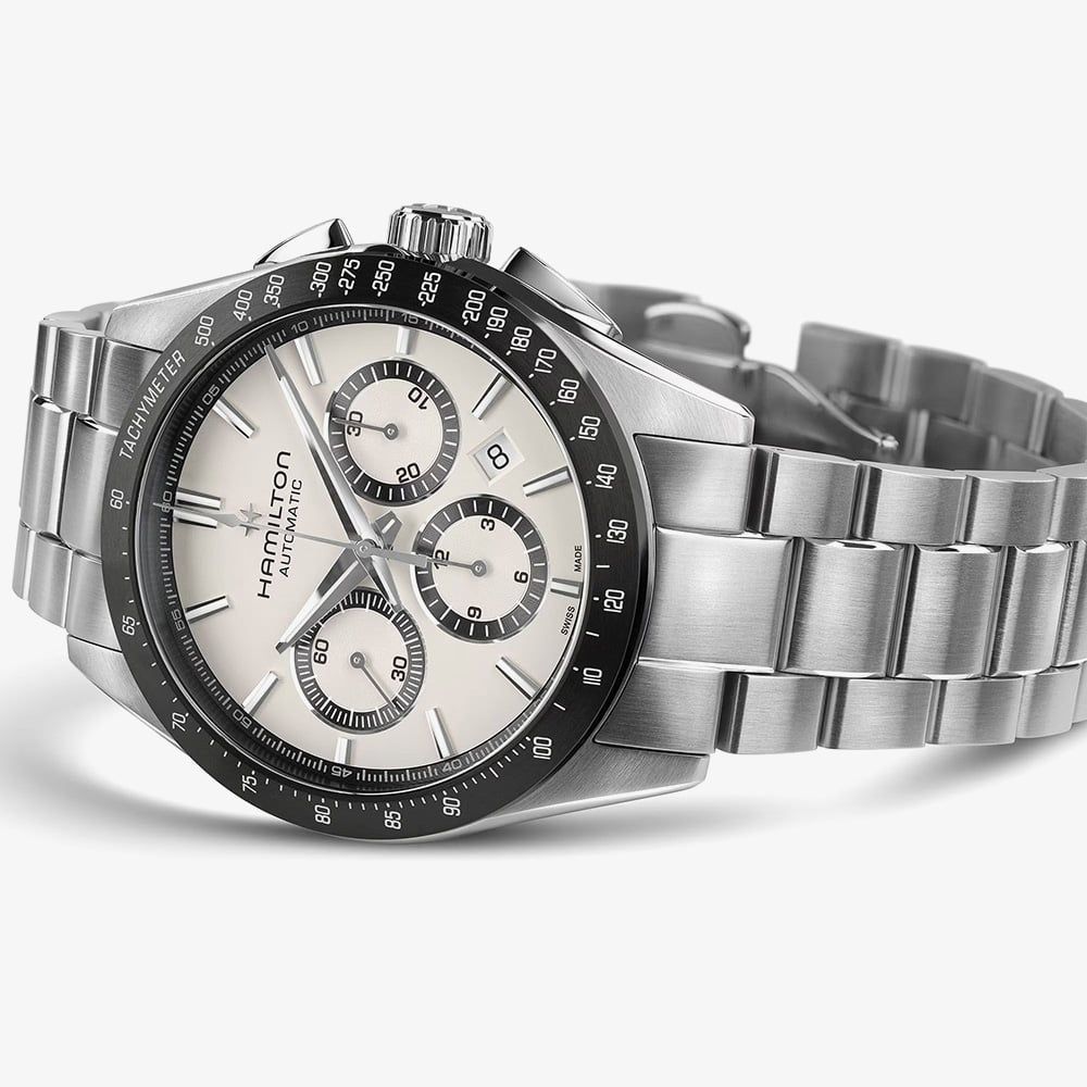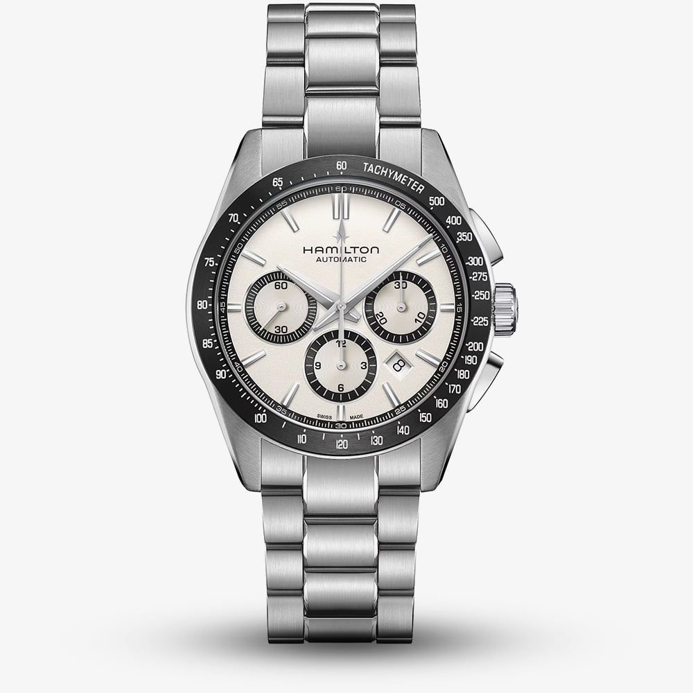 Designed for those who demand both style and performance, the Jazzmaster Performer is as versatile as it is refined. Whether you're heading off on an adventurous weekend or attending a black-tie event, this watch rises to the occasion. Housed in a 42mm stainless steel case, it features a crisp white dial, bold black bezel, and a robust stainless steel bracelet. Powered by the H-31 automatic chronograph movement with a 60-hour power reserve, it also includes luminous hands and a tachymeter for added functionality.