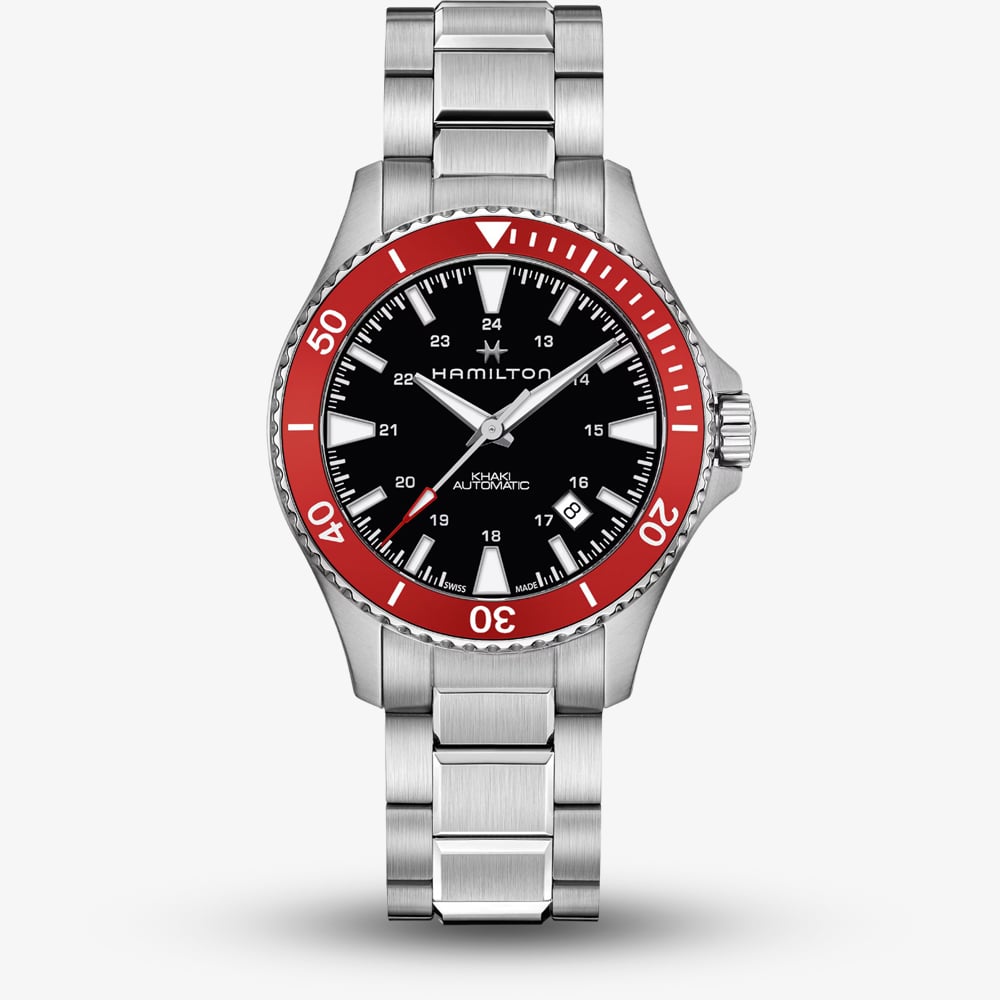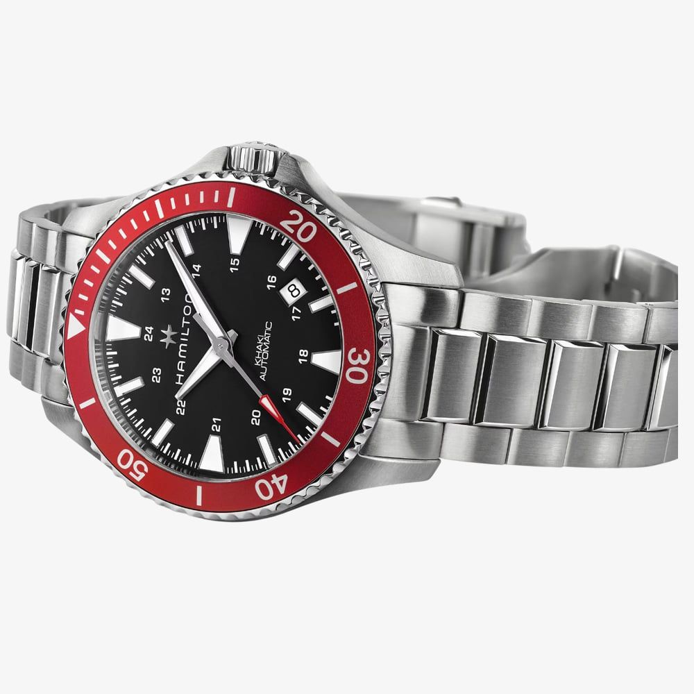 A dynamic fusion of maritime heritage and contemporary design, tailored for those who seek both adventure and sophistication. This timepiece boasts a 40mm stainless steel case offering a sleek and durable exterior. Its standout feature, the red aluminium unidirectional bezel, draws inspiration from maritime elements like ocean rescue teams, adding a vibrant touch to its nautical theme. The black dial offers a subtle contrast to the bright bezel. While a small date window adds practicality without disrupting the dial's symmetry.