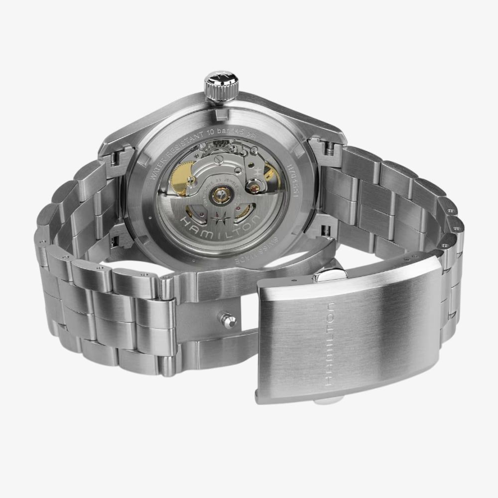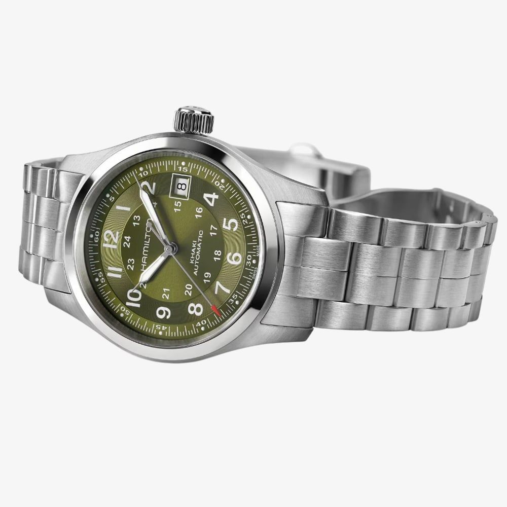 Versatile, durable, and distinctly stylish—this watch delivers performance and presence in a sleek design. The deep green dial brings a bold, modern edge to a timeless military-inspired aesthetic. Luminous numerals and hands ensure quick, clear readability in any light. Its self-winding automatic movement keeps perfect time powered by your natural motion—no batteries needed, no maintenance stress. Housed in a compact stainless steel case and topped with scratch-resistant sapphire crystal glass, it offers everyday durability without the bulk. The stainless steel bracelet adds a polished finish, making this watch a standout piece.