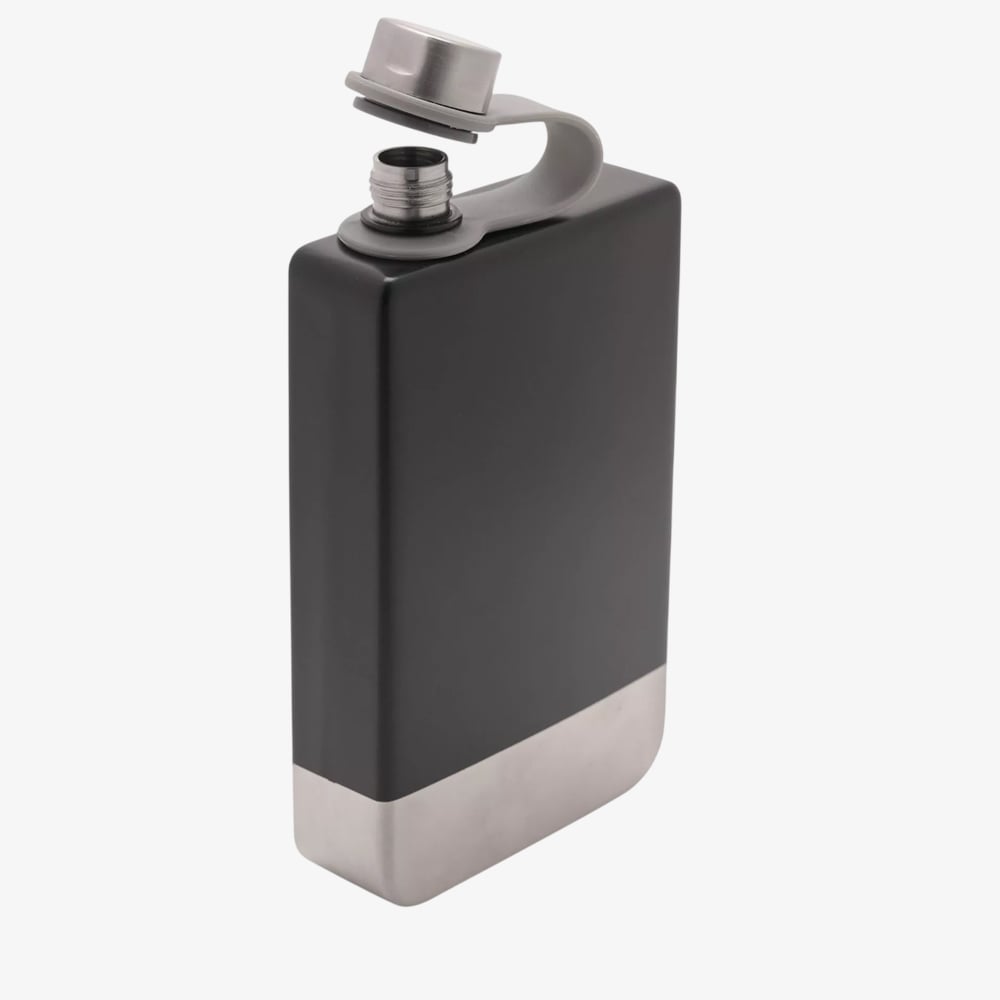 This sleek flask features a smooth black finish and a smart rectangular shape that fits comfortably into a pocket or bag. With an 8oz capacity, it provides ample space for your preferred drink.