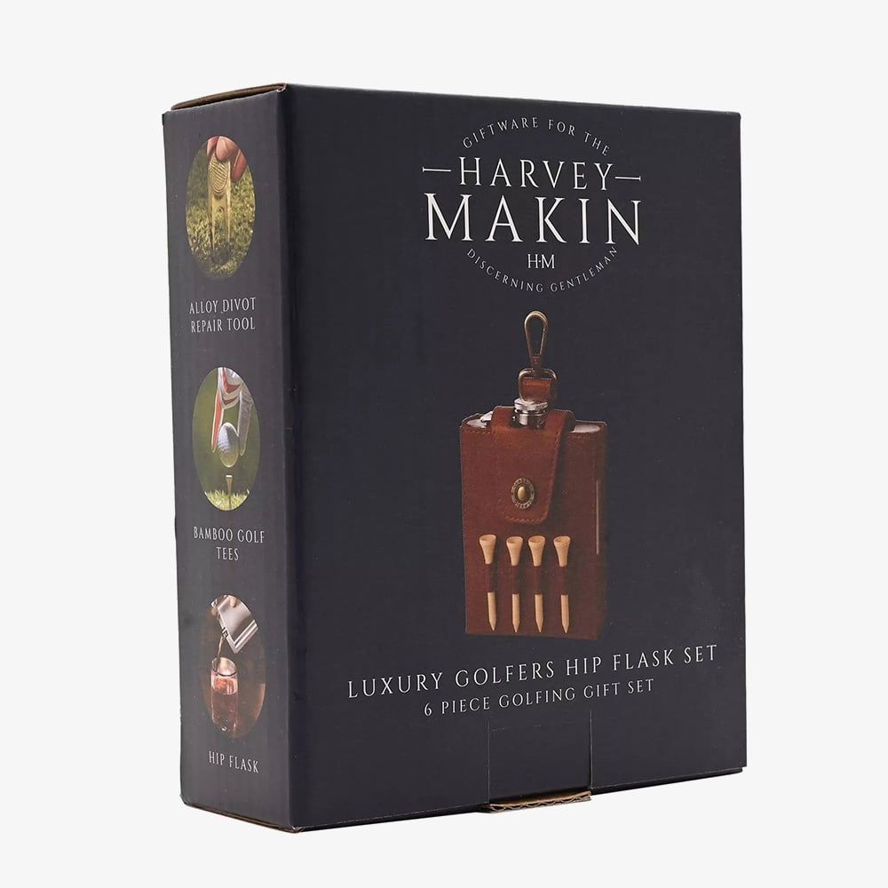Perfect for gifts for men, this HARVEY MAKIN® gift set includes a stainless steel flask for their favourite tipple and a selection of useful golfing accessories. Housed in a stylish tan leather case, it’s ideal for birthdays, Father’s Day, or just because, making it a thoughtful and practical gift for any golf enthusiast.