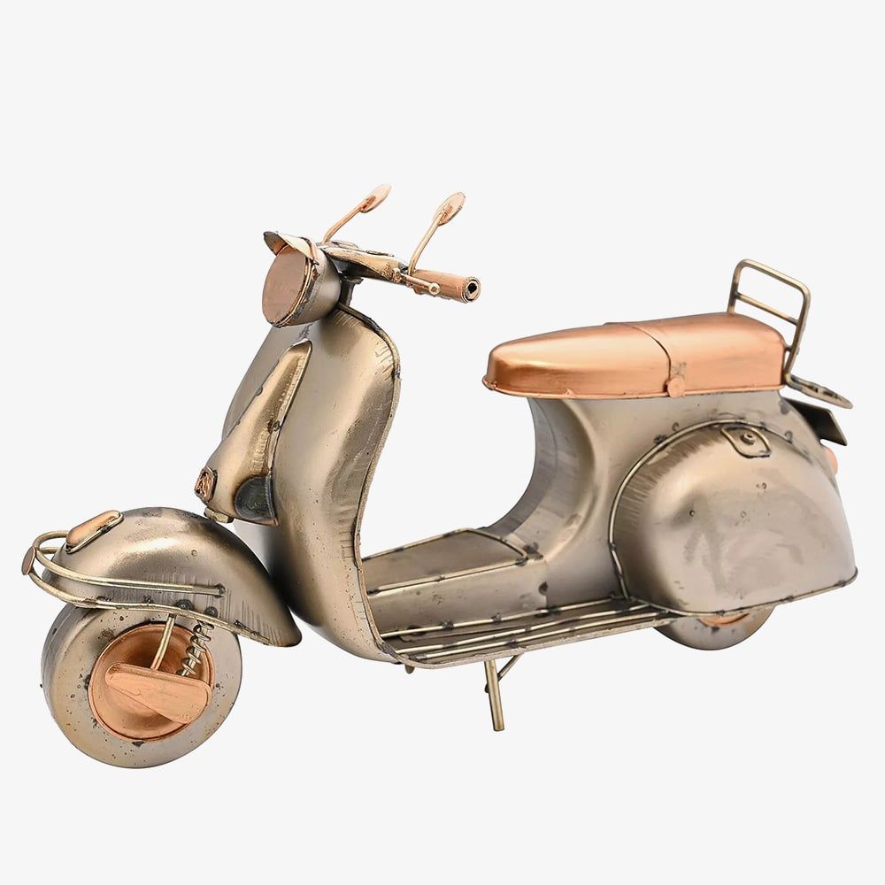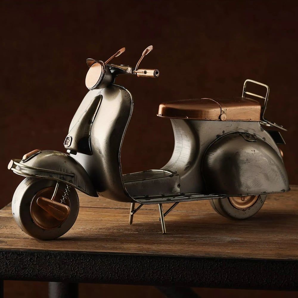 Add a hint of retro charm to your home with the Harvey Makin Motorcycle Scooter. Styled as a vintage style scooter with seat compartment, this model evokes nostalgia and city adventures. Its rustic, weathered finish enhances the vintage aesthetic, making it a perfect decorative piece for lovers of retro design and motorcycles.