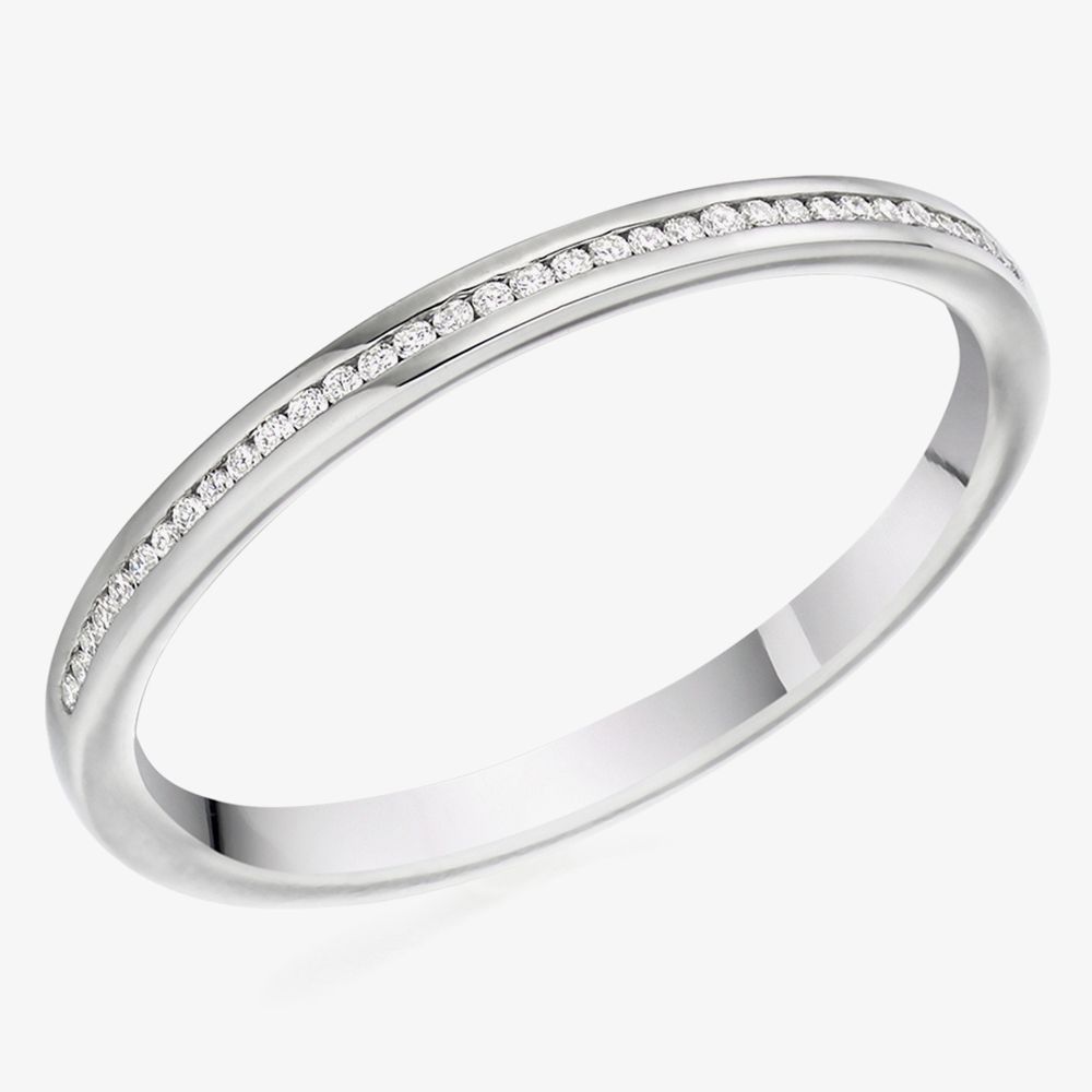 Providing subtle sparkle to add some glamour to any styling, the Platinum 0.07ct Diamond Half-Eternity Ring will make a stunning addition to any bridal set. Made from platinum, this half eternity ring is adorned with 0.07ct of round brilliant-cut diamonds in a channel setting, giving 45% diamond cover to this dainty 1.8mm band.