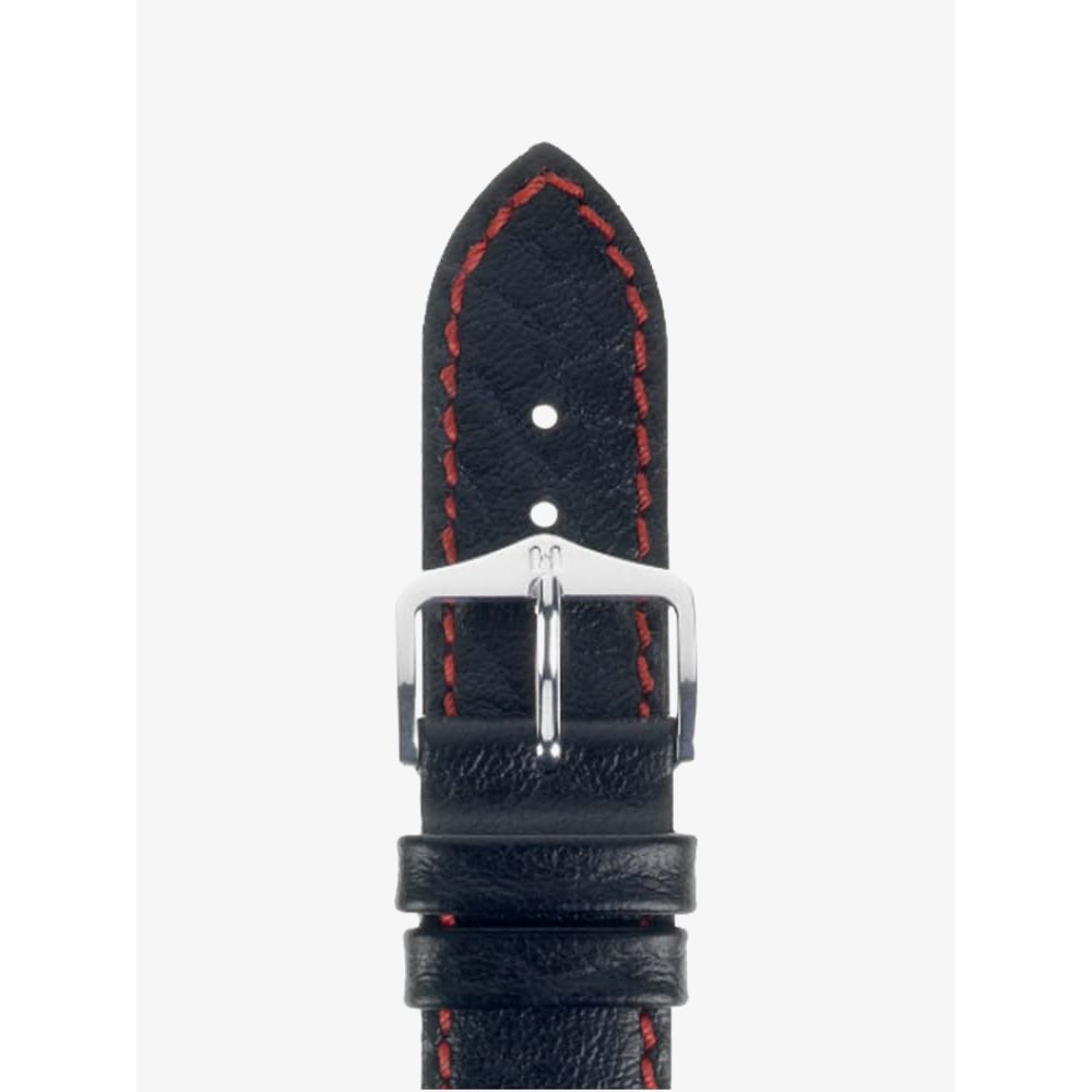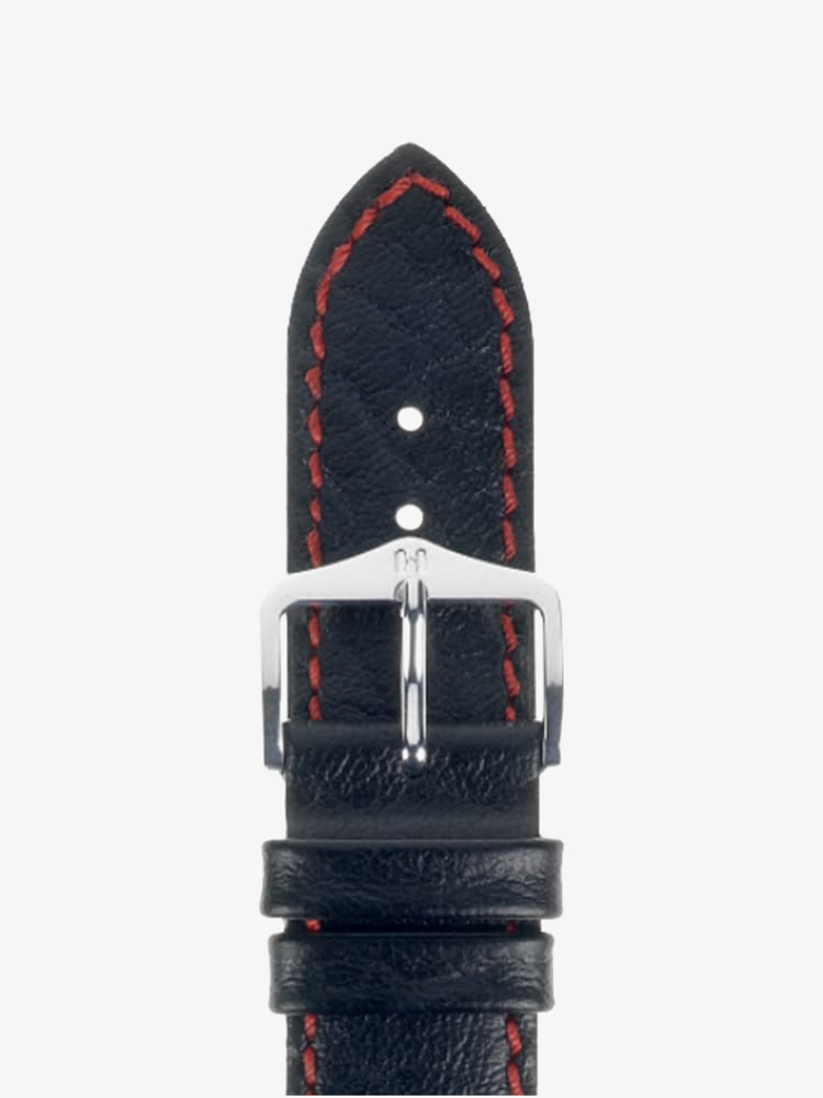 - Black calfskin leather with red stitching
